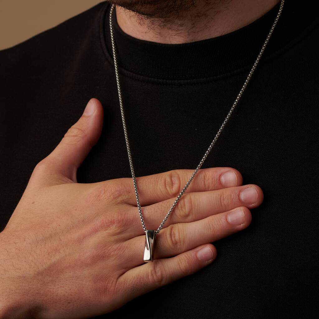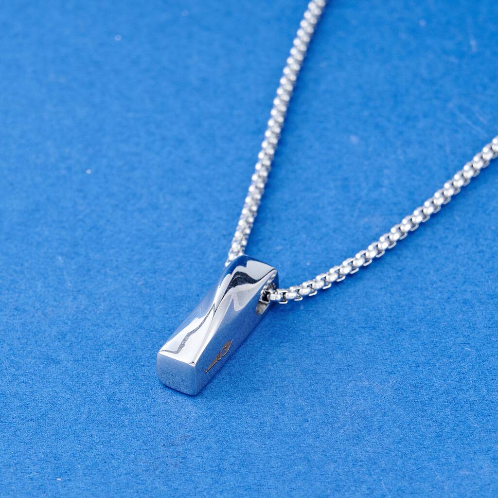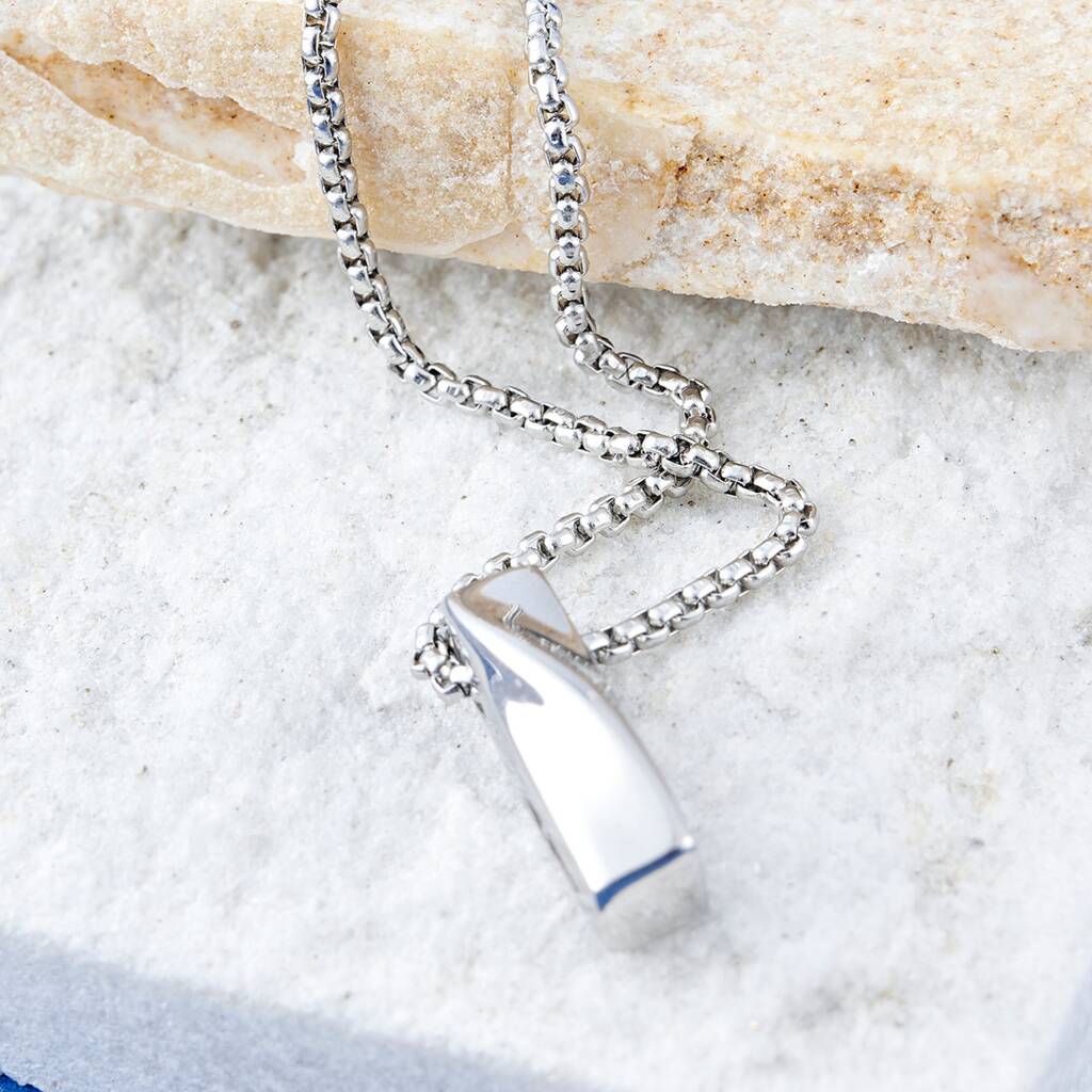 Crafted from premium 316L stainless steel, this silver rectangle wave pendant features a smooth, sculpted curvature that reflects light with refined precision. Its polished surface offers a mirror-like finish, creating a modern yet timeless aesthetic designed for everyday wear. Built to endure, the piece is fully resistant to tarnishing, corrosion, and fading—crafted to maintain its brilliance over time.