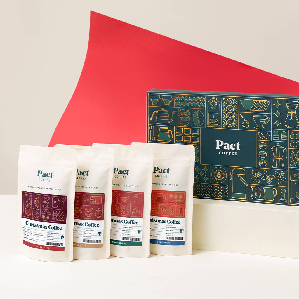 There’s the chocolatey best of Brazil (Rich & Chocolatey), bright hints of orange and peach from Honduras (Smooth & Sweet), and juicy Kenyan notes of plum and blackcurrant (Light & Zesty). All of that, plus the return of our award-winning Christmas Blend, which has heady hints of Christmas pudding.