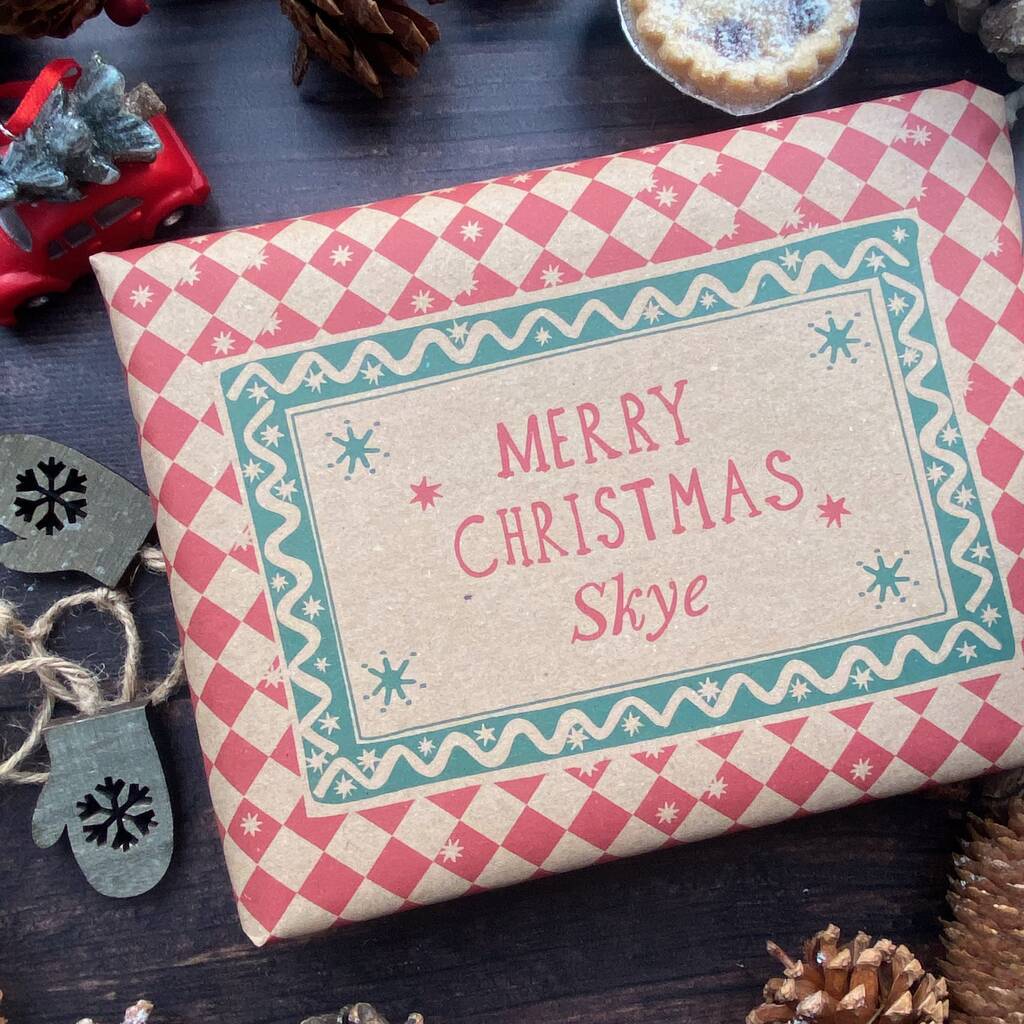 Christmas Personalised Name Gift Paper Fibre Manilla Kraft Wrapping Paper, 1 of 9