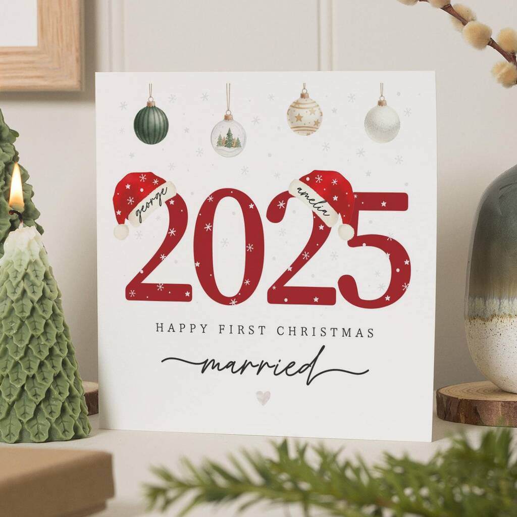 Personalised 2025 First Christmas Card For Newlyweds