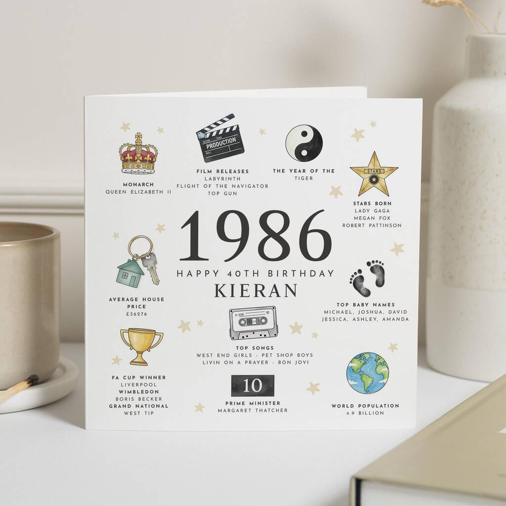 Personalised 40th Birthday 1986 Facts Card