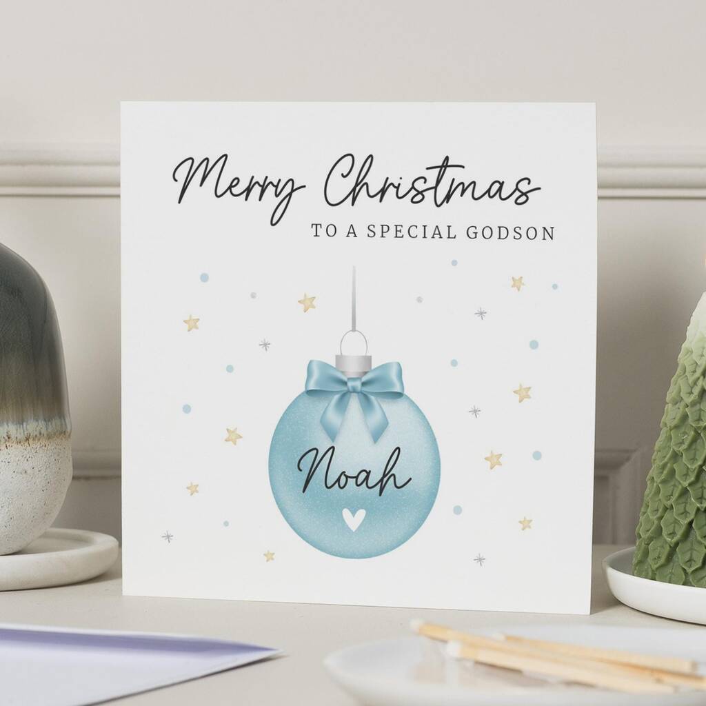 Personalised Godson Christmas Bauble Card For Boy