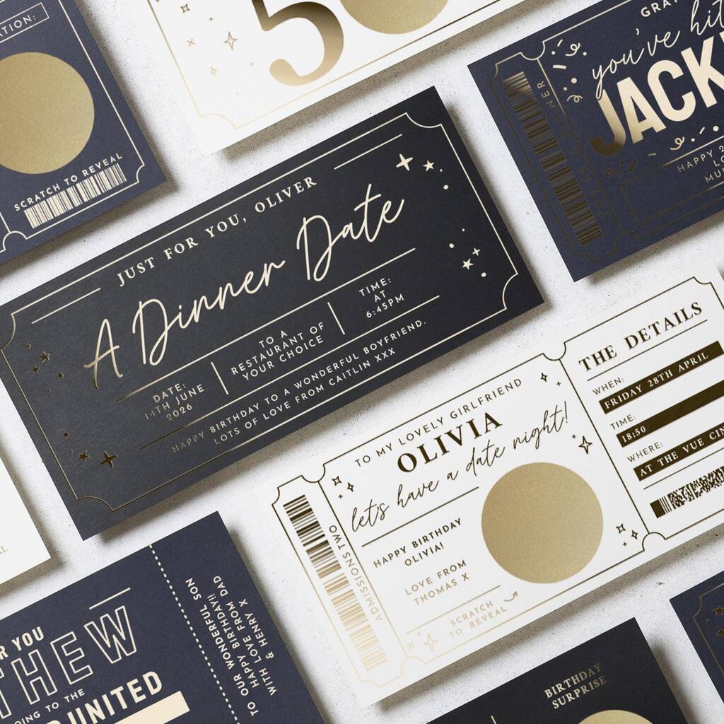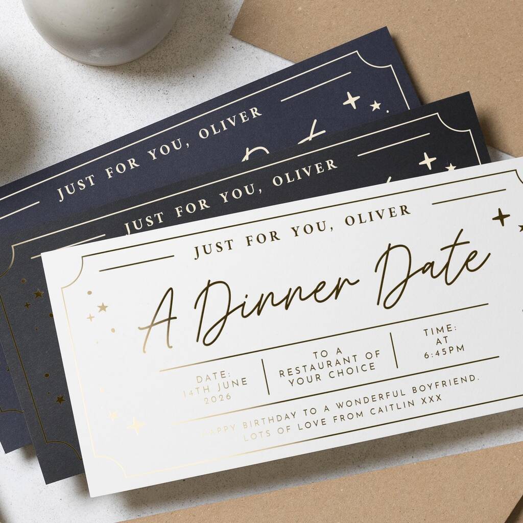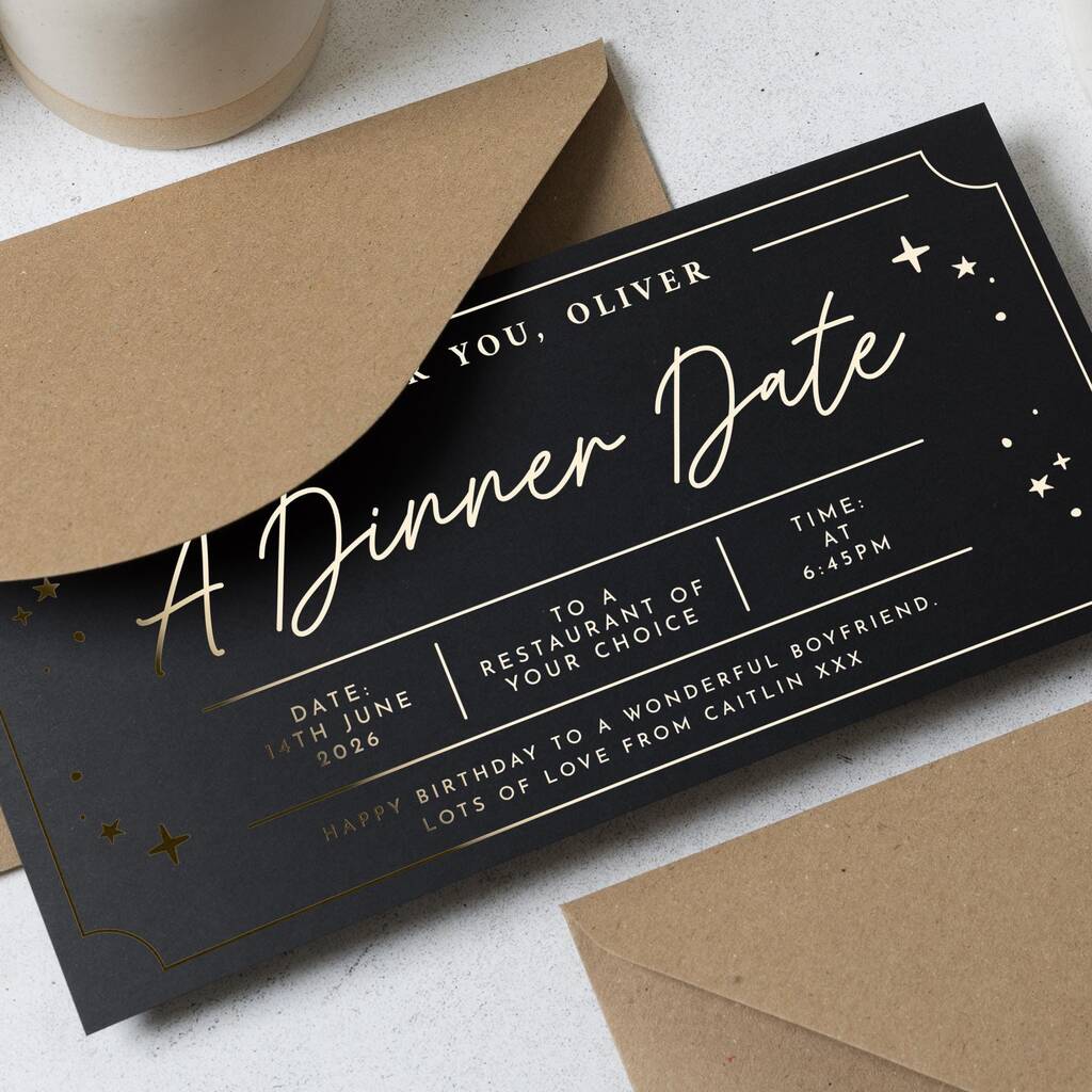 Personalised Gold Foil Dinner Date Gift Voucher
