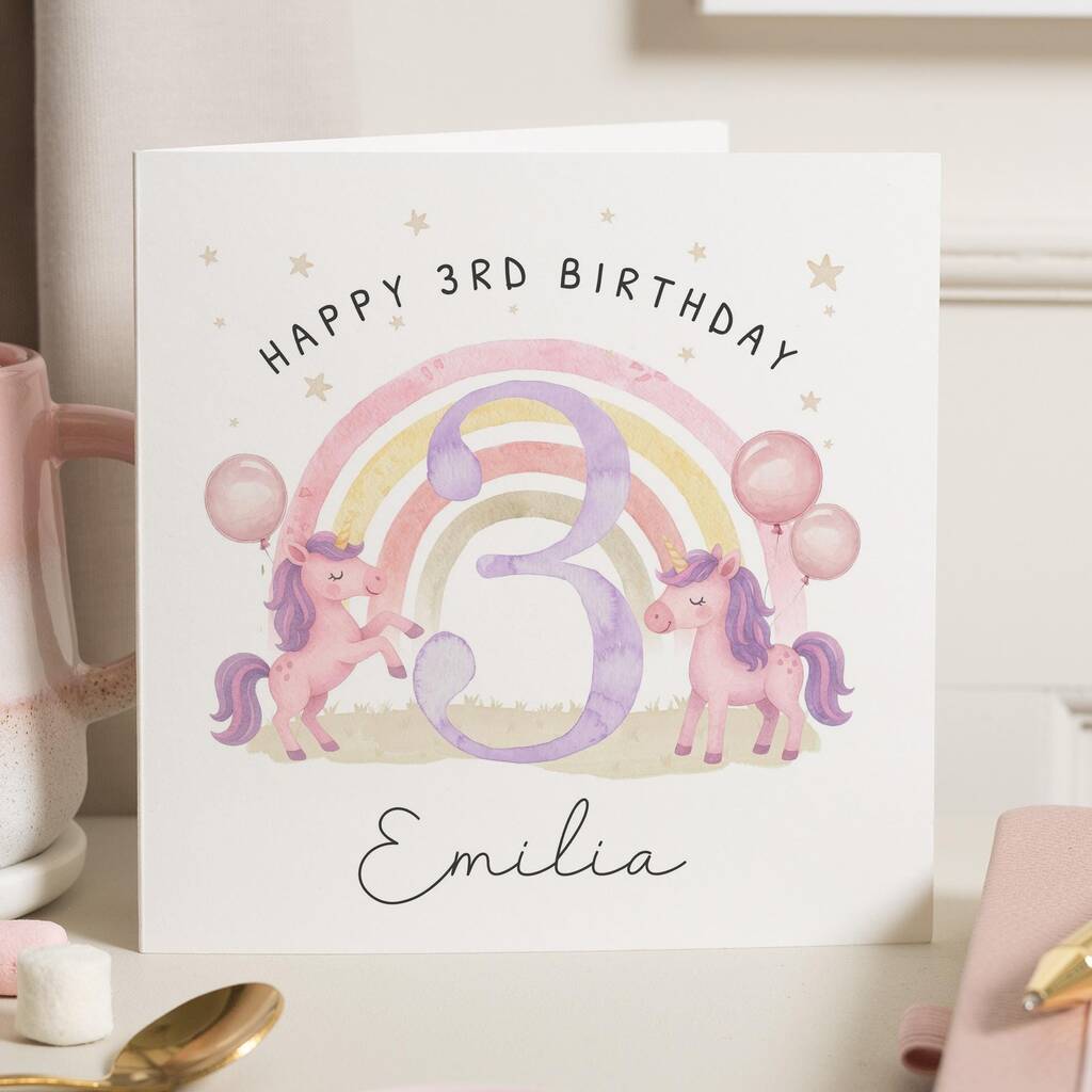 Personalised Unicorn 3rd Birthday Card For Daughter