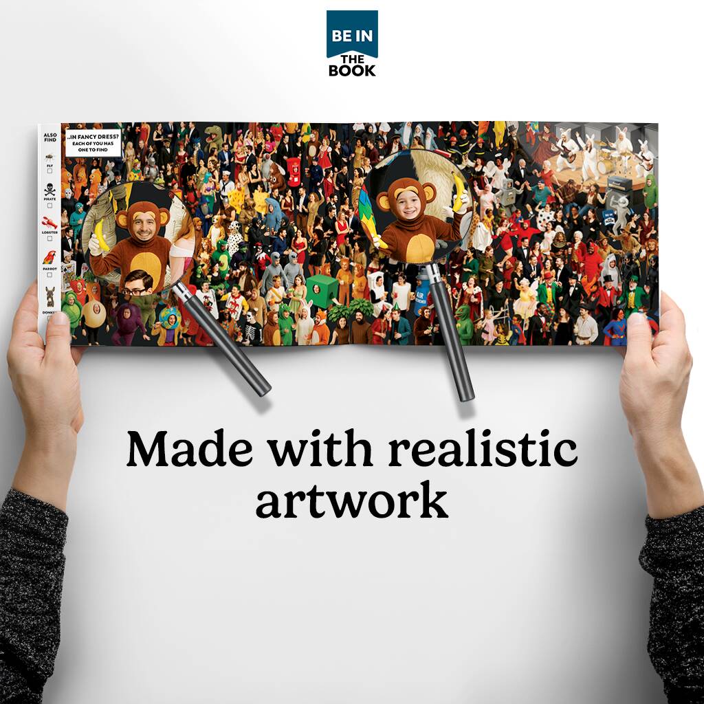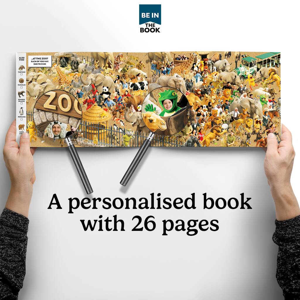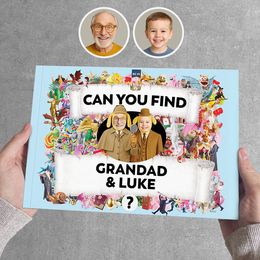 Upload photos of Grandad and grandson or granddaughter, and they will be hidden in photorealistic scenes as various characters to find in multiple places within the book. This beautifully and vibrantly designed, large A4, high-quality book makes the perfect unique gift for new Grandad's or on Father's Day, birthdays, Christmas, or special 'Grandad' occasions.