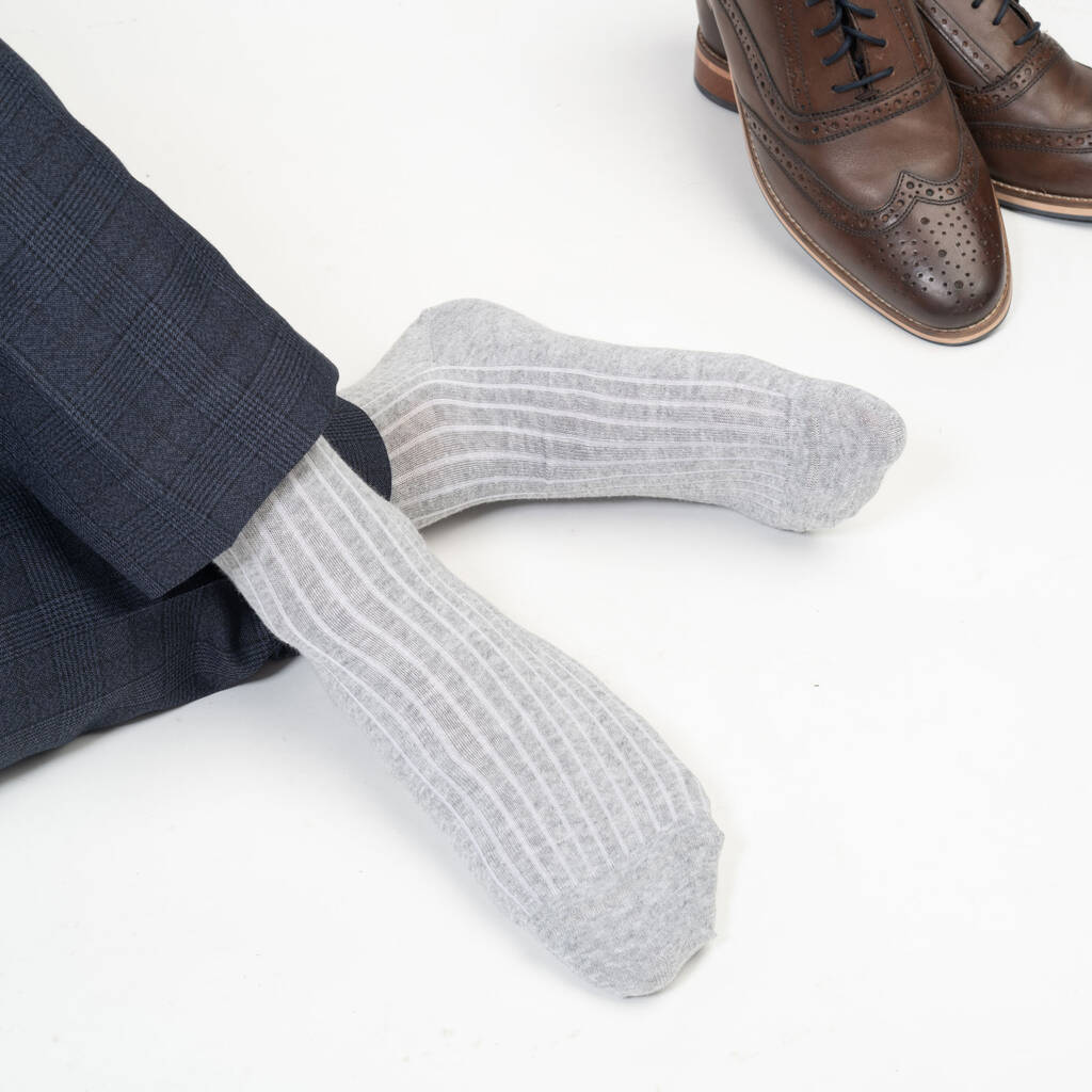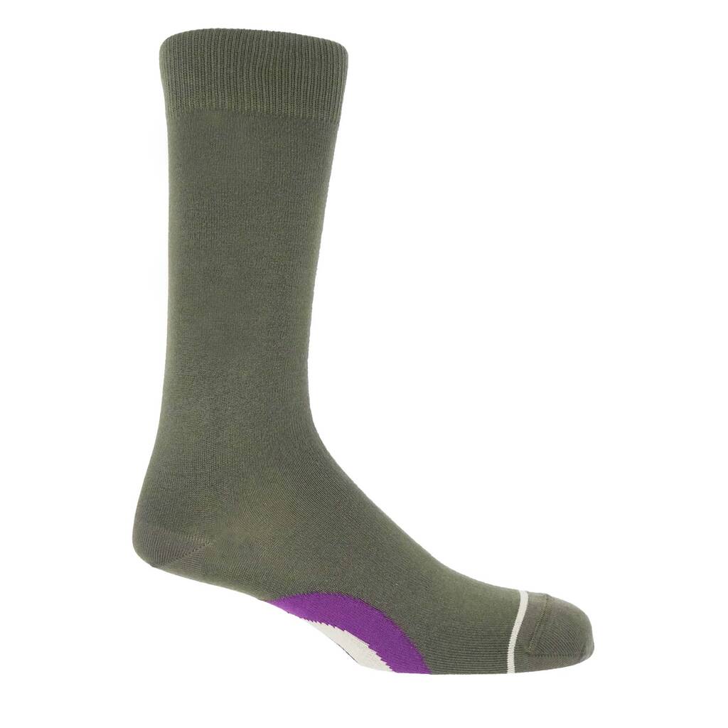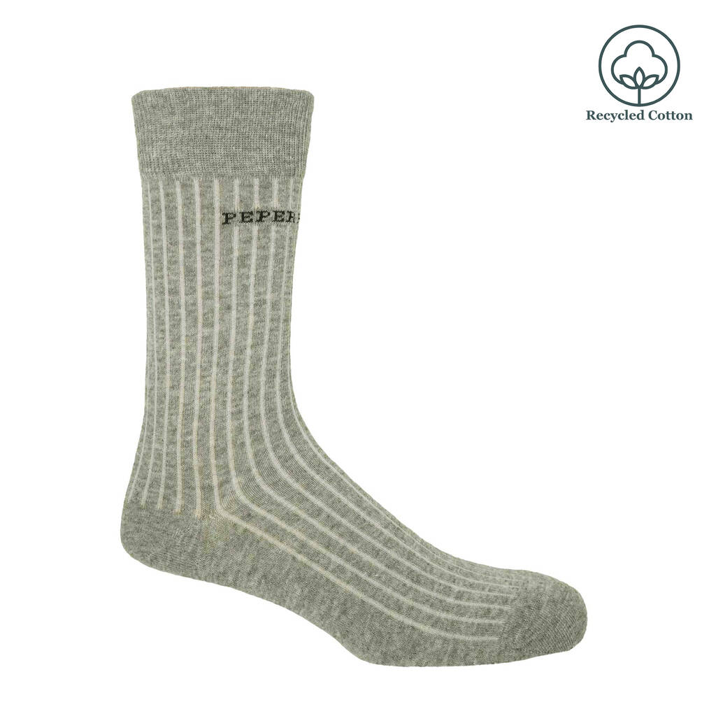 Two pairs of premium socks: olive Big Target and grey Recycled Ribbed. Crafted in England from Supima cotton and recycled fibres. Sustainable luxury.Elevate your sock drawer with this distinctive bundle featuring two pairs: the olive Big Target, showcasing a bold geometric design, and the grey Recycled Ribbed, offering a classic textured finish. Both pairs are crafted in England from high-quality materials — the Big Target from soft Supima cotton for a luxurious feel, and the Recycled Ribbed from sustainable recycled fibres, combining comfort with eco-consciousness. Designed with a seamless toe for added comfort, these socks embody British craftsmanship and style. Perfect for those who appreciate both fashion and sustainability.
