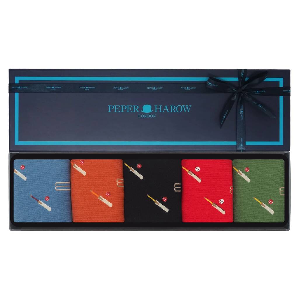 Cricket Men’s Gift Box — five vibrant pairs: orange, green, red, black, blue — playful cricket motifs, premium Supima cotton, seamless toe.Step onto the pitch in style with the Cricket Men’s Gift Box, featuring five pairs in orange, green, red, black and blue. Each pair showcases playful cricket inspired motifs, expertly hand finished in England using luxurious Supima cotton. The seamless toe and fine gauge knitting ensure superior comfort, fit and durability. Perfect for gifting or elevating your sock collection, this curated bundle combines colourful design, quality craftsmanship and everyday wearability. A must-have for the gentleman who enjoys characterful accessories with a British heritage touch.