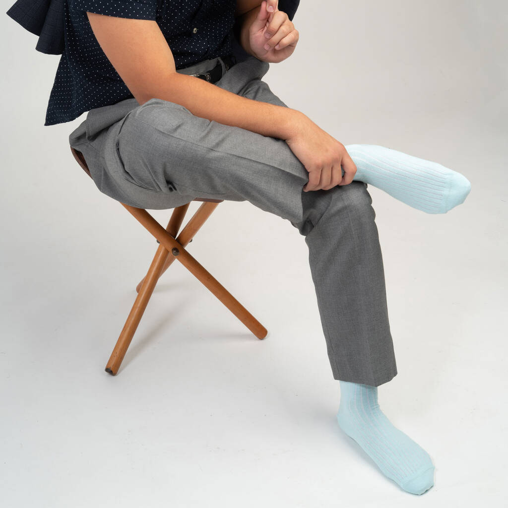 Recycled Ribbed Light Blue And Blue Men's Socks