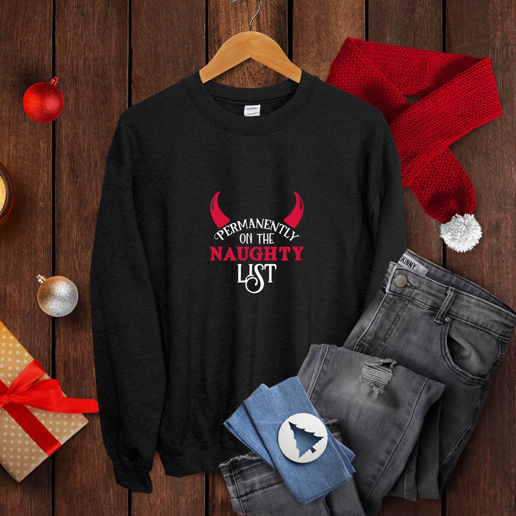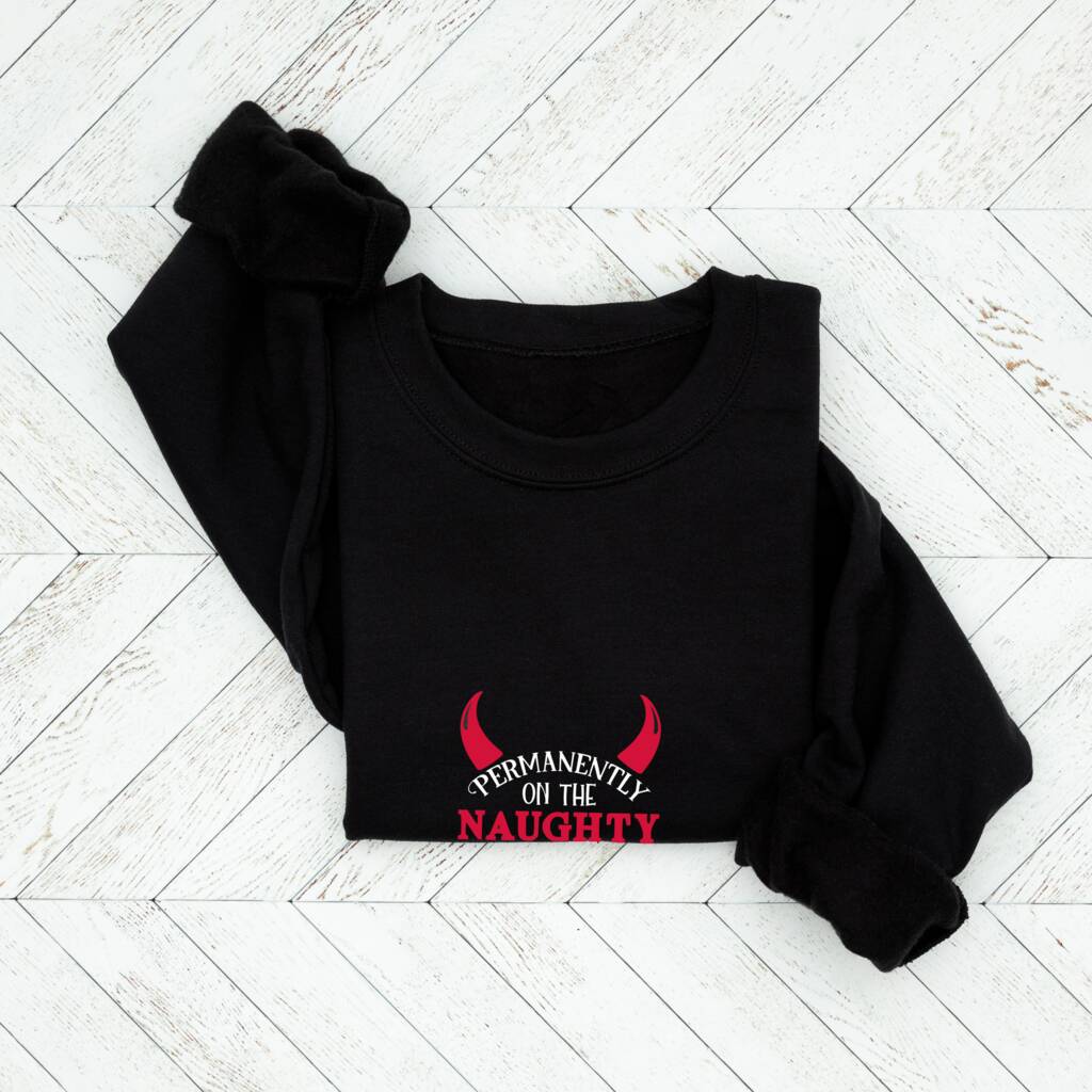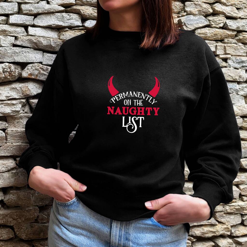 Black Christmas Jumper With ‘Permanently On The Naughty List’ Slogan