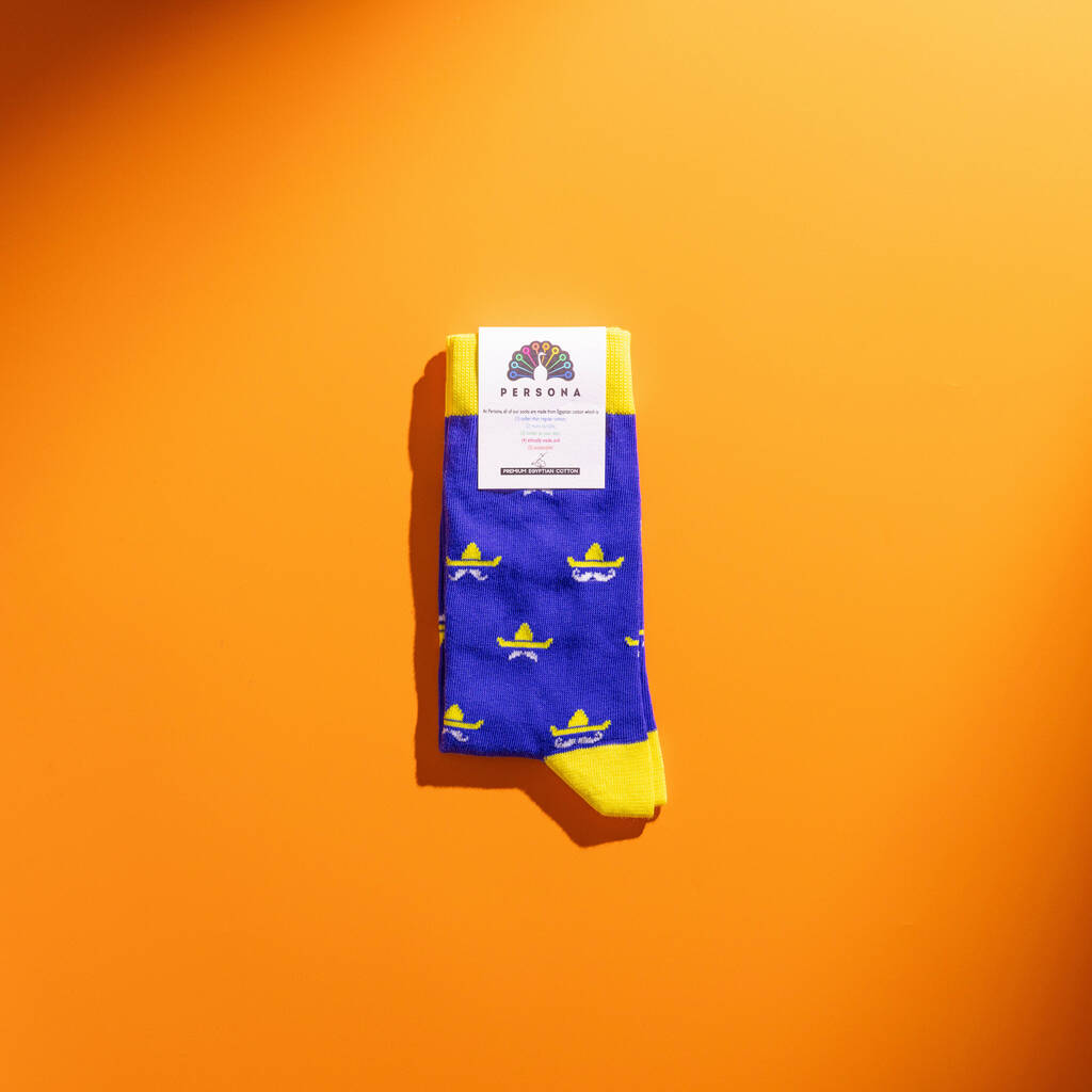 Yellow Sombrero Pattern Colourful Egyptian Cotton Men's Socks, 1 of 5