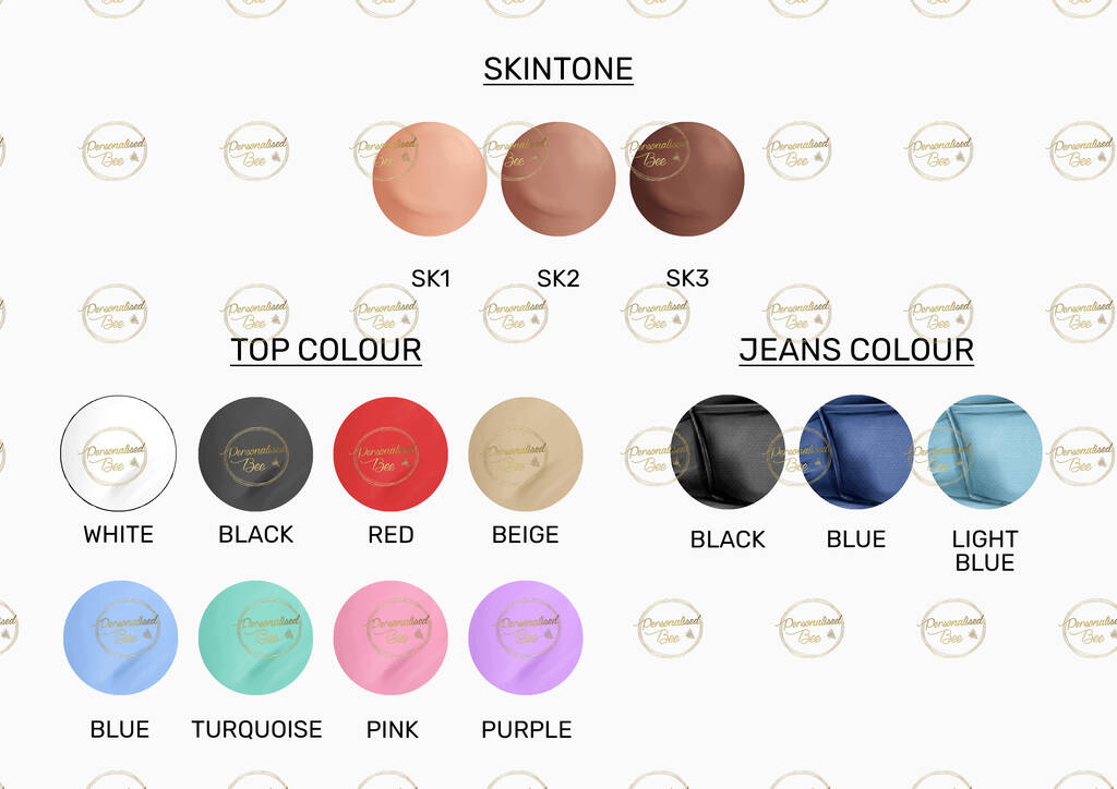 Every personalised couple plaque is fully customisable to reflect your relationship. Customers can choose skin tones, hair styles, hair colours, and outfit colours for each person, ensuring the illustration is a true representation of the couple.