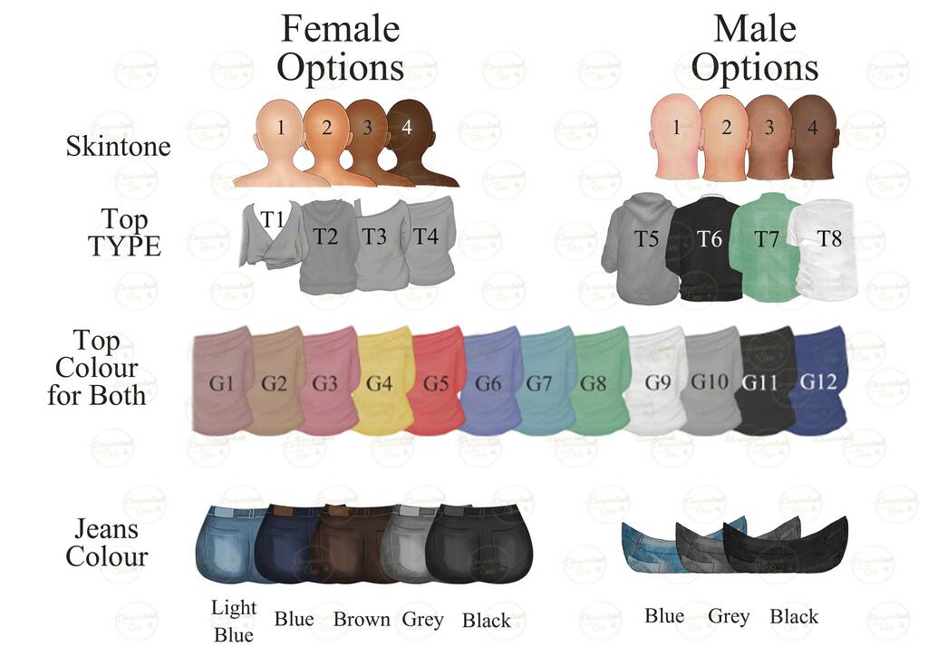 Pets can also be included, with a wide selection of dog and cat breeds to represent each companion. For pets who have passed, you can choose to add angel wings or a halo for a sentimental tribute.
