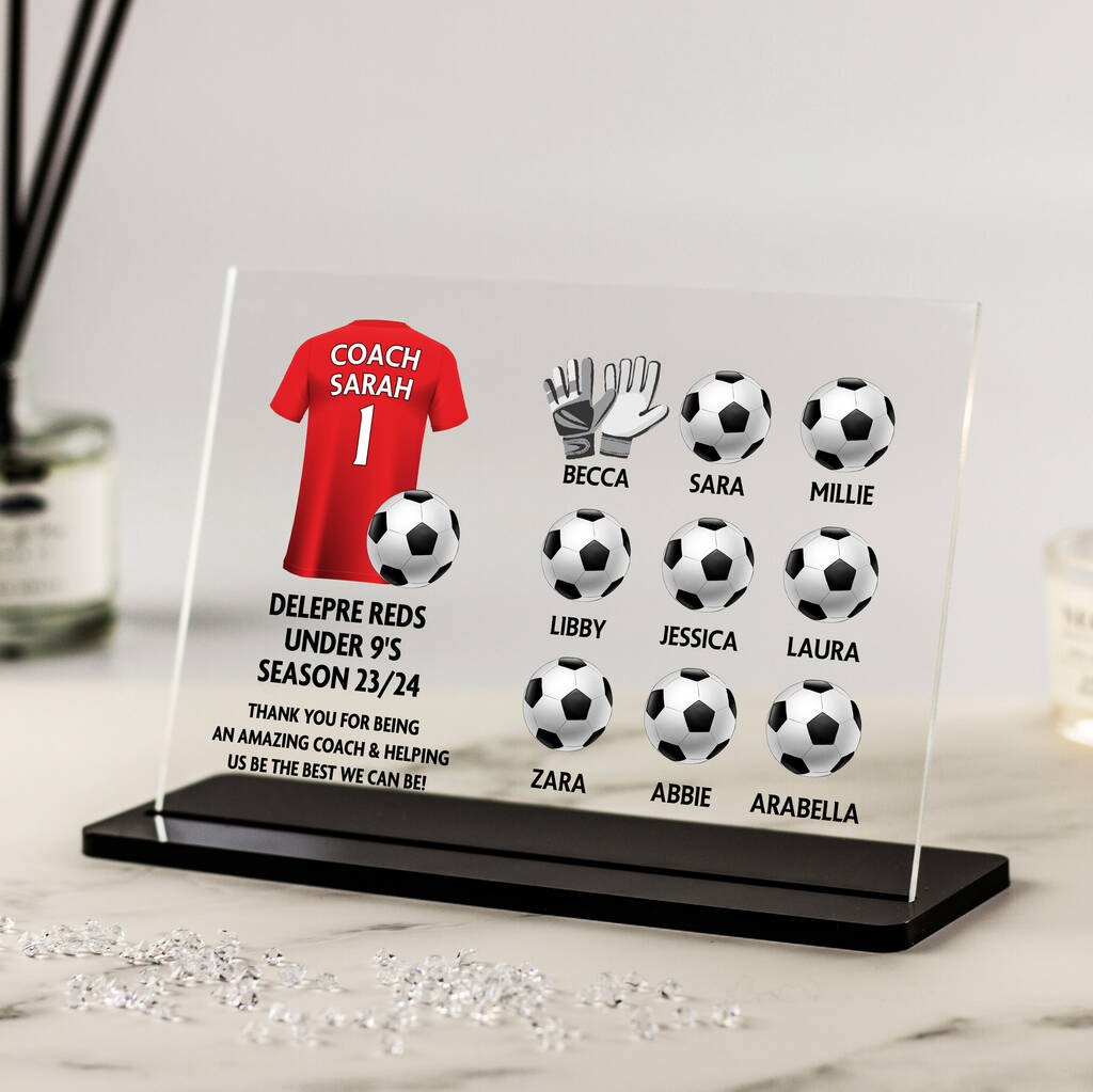 Every coach and team acrylic plaque is handmade and fully customisable: