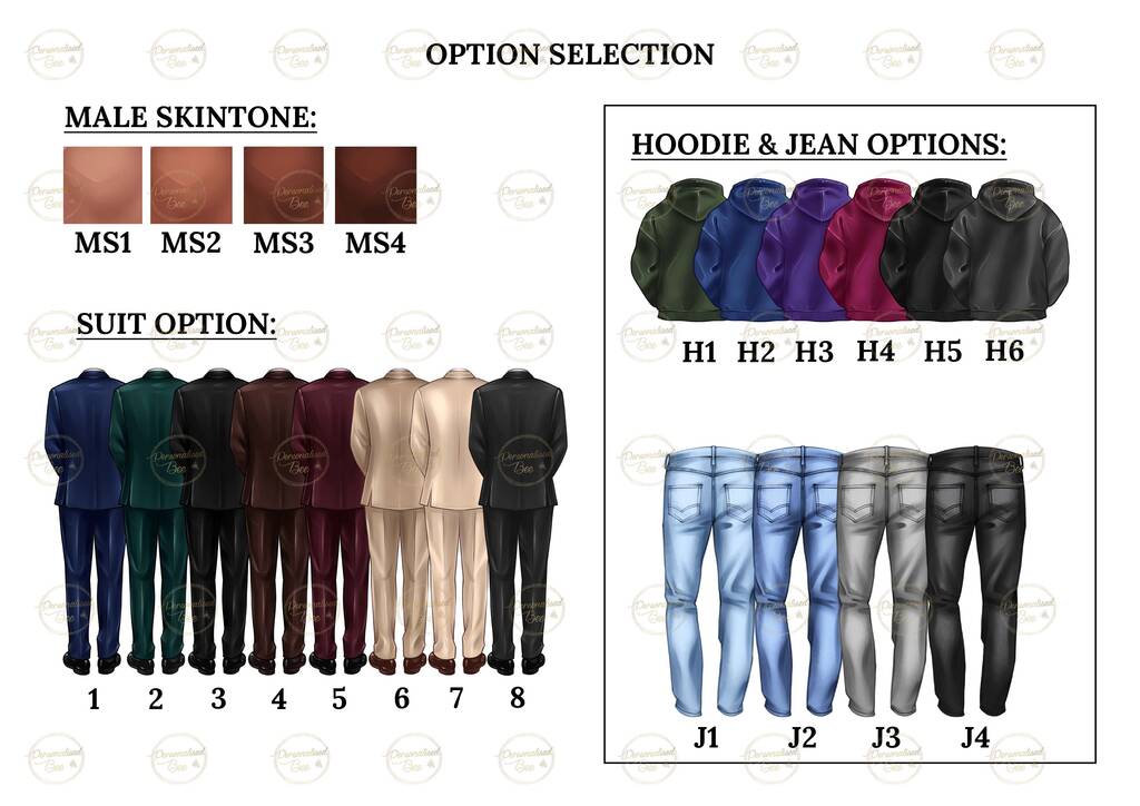 Each personalised Valentine’s acrylic plaque can be customised to perfectly represent the couple. Customers can choose skin tones, hair styles, and hair colours for each person. Outfit options include dressy attire — silk dress and suit — or casual outfits such as t-shirts/hoodies with jeans, giving a playful or elegant feel to your illustration.
