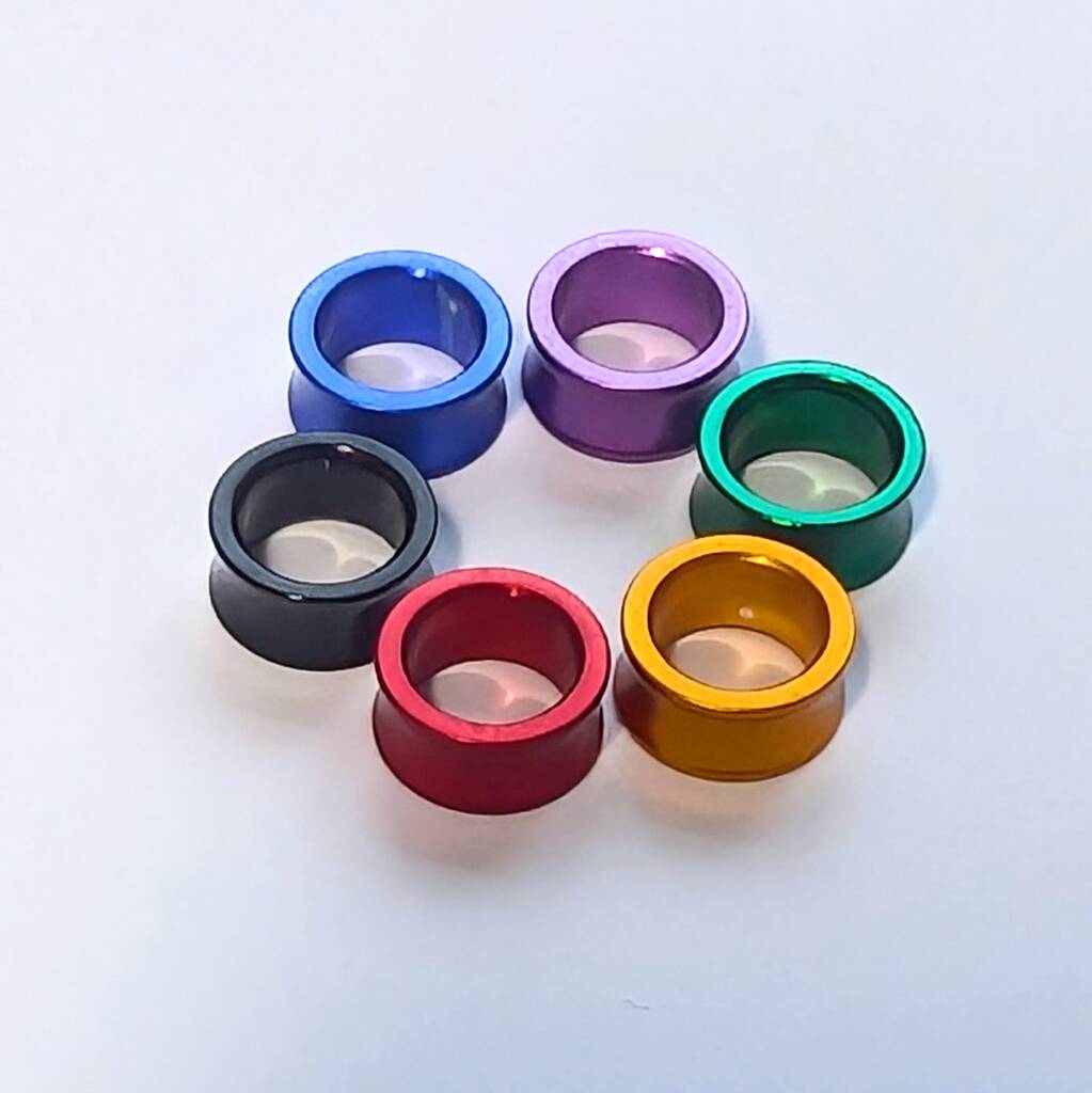 The rings are available in 6 colours (red, blue, green, black, orange, purple) you can choose any colour combination. Just leave a 'note to seller', stating the ring colours and their order on the bracelet.