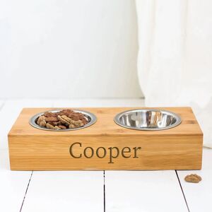 Personalised Name Bamboo Double Dog Or Cat Bowl