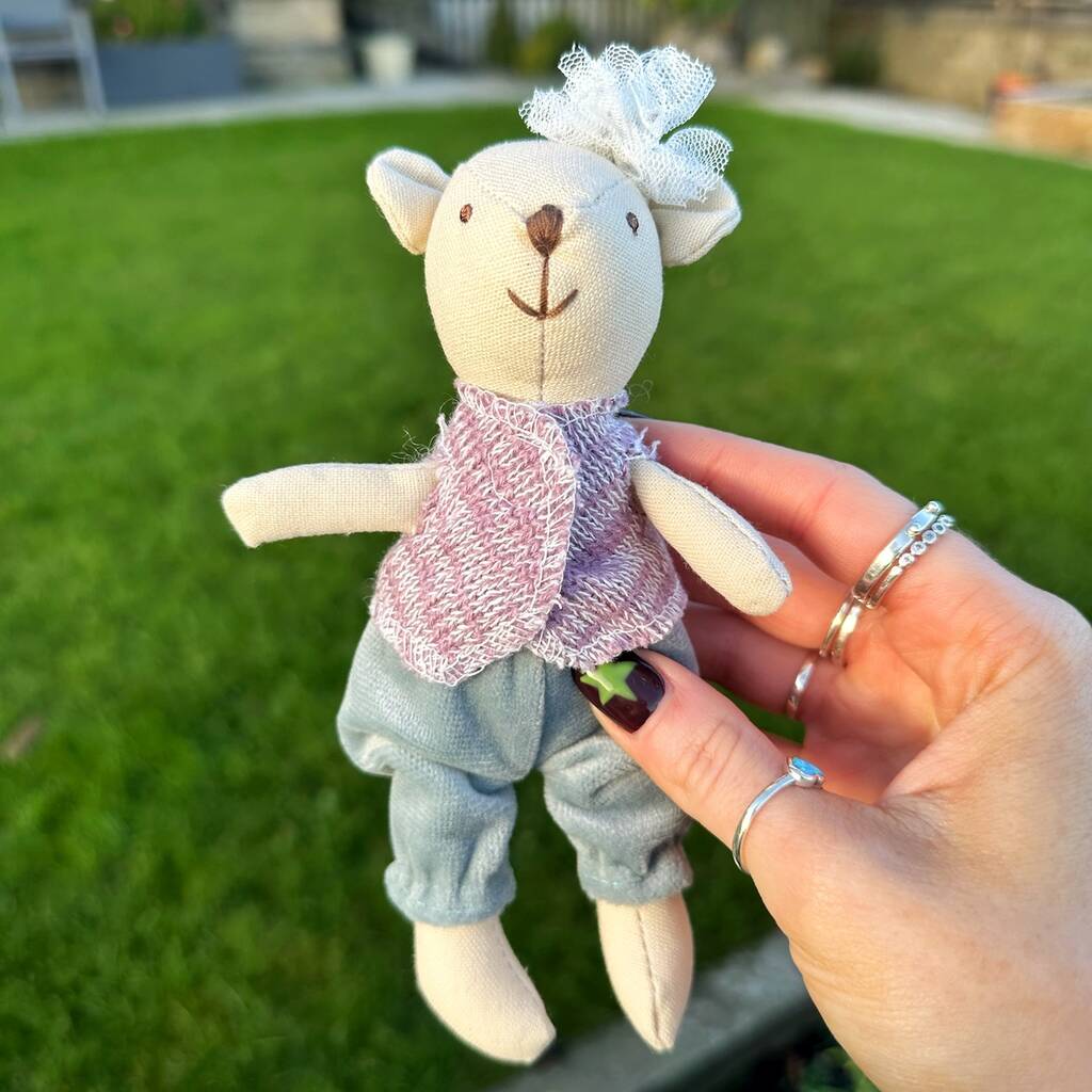 Tiny Linen Girl Bear With Flower
