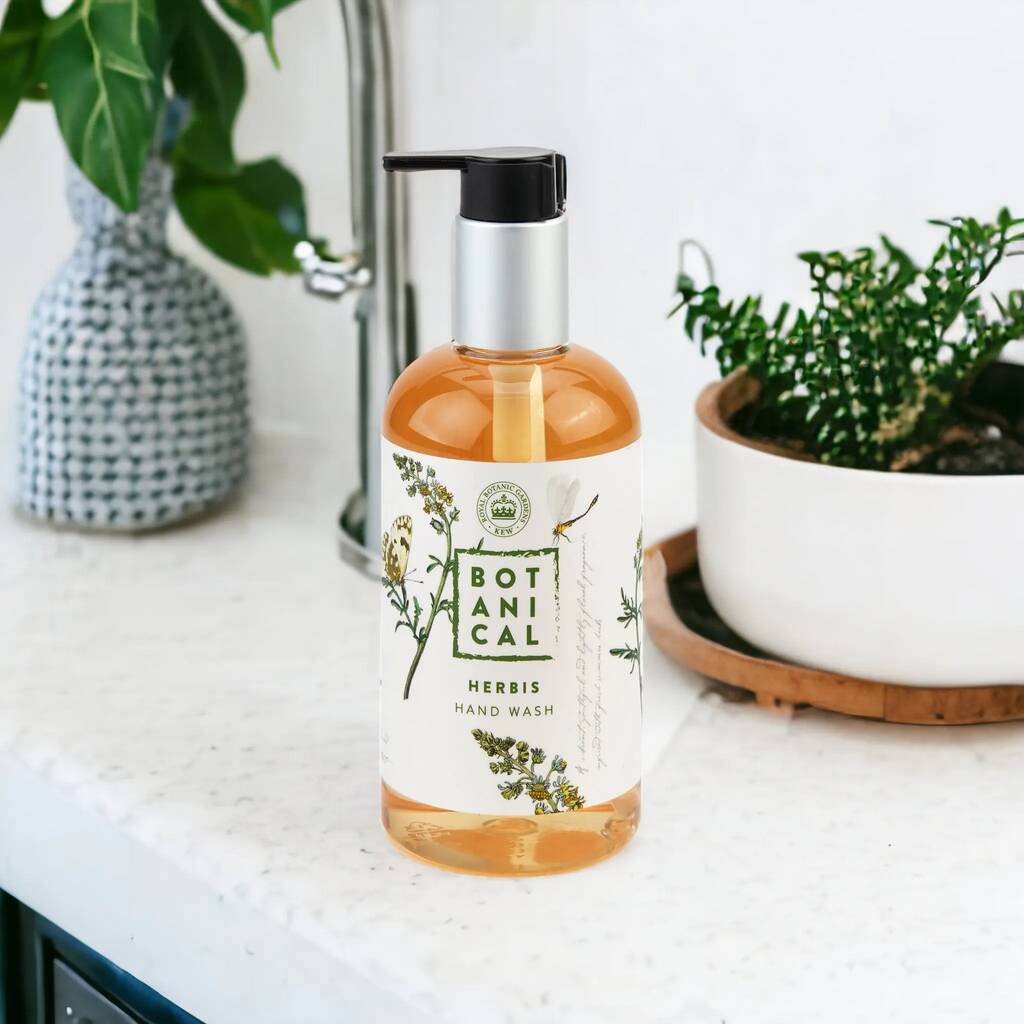 The Kew Herbis Hand Wash is a premium botanical liquid cleanser inspired by the rich horticultural heritage of the Royal Botanical Gardens, Kew. Designed to offer both indulgence and function, this 300ml hand wash brings together carefully selected ingredients and a sophisticated fragrance profile to elevate your daily skincare routine.