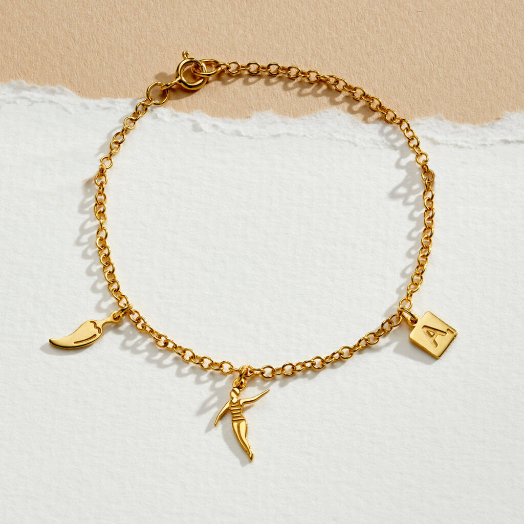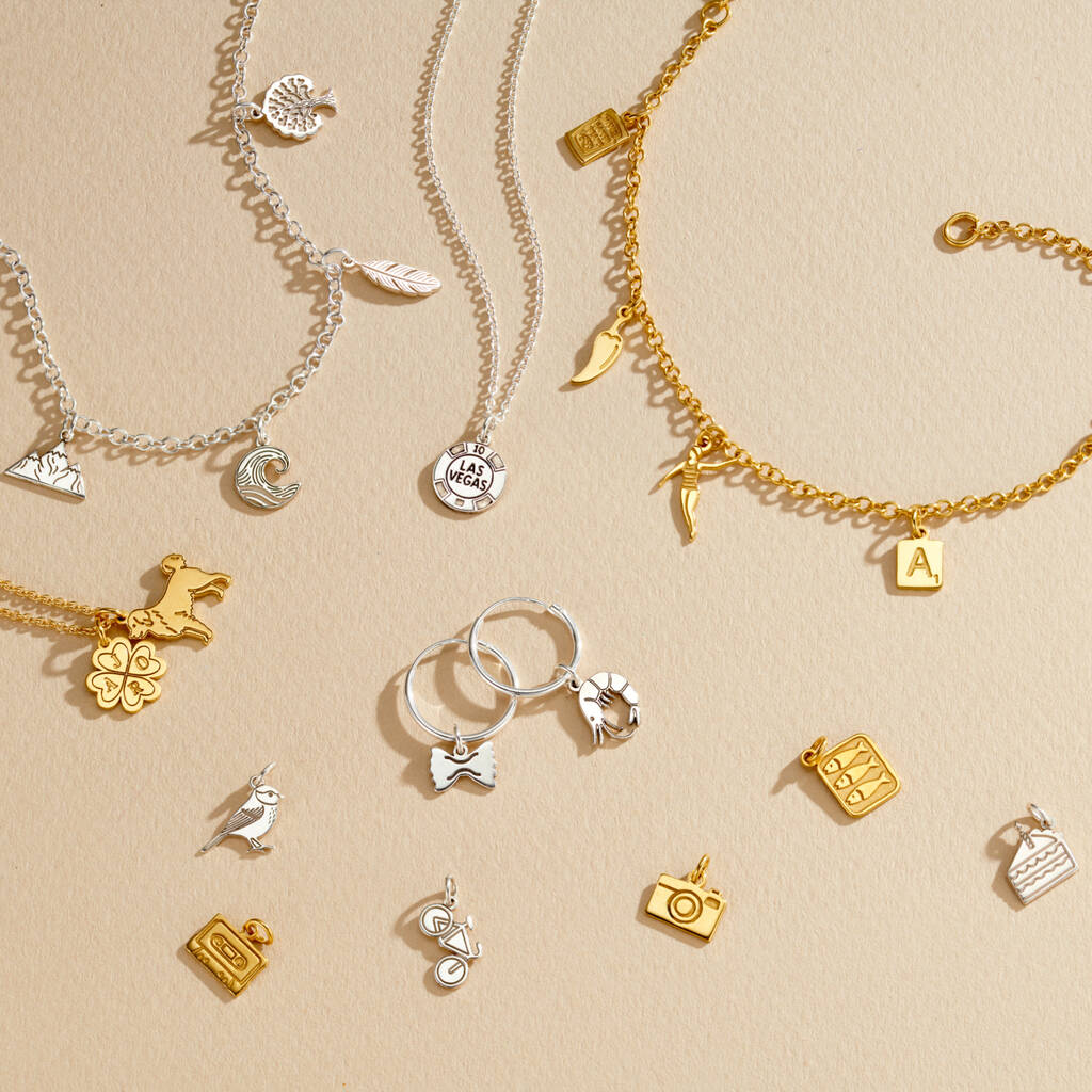 Tiny treasures that tell your story. Design your very own personalised charms with our Personalised Dinky Story Three Charm Station Bracelet