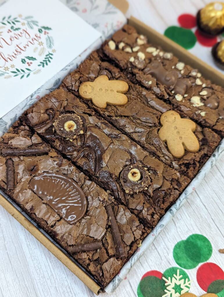 Handmade | Delivered Through the Letterbox | Christmas Gift | Festive Brownies | Small BusinessMake Christmas extra delicious with our Letterbox Brownie Box—freshly baked, beautifully packaged, and designed to slip straight through their letterbox. Each box features indulgent small-batch brownies made with premium Belgian chocolate, including limited-edition festive flavours topped with cosy spices and nostalgic Christmas treats. Perfect for friends, family, colleagues or teachers, with a free personalised message. Delivered nationwide, handmade by an independent bakery, and wrapped in festive packaging ideal for thoughtful Christmas gifting.