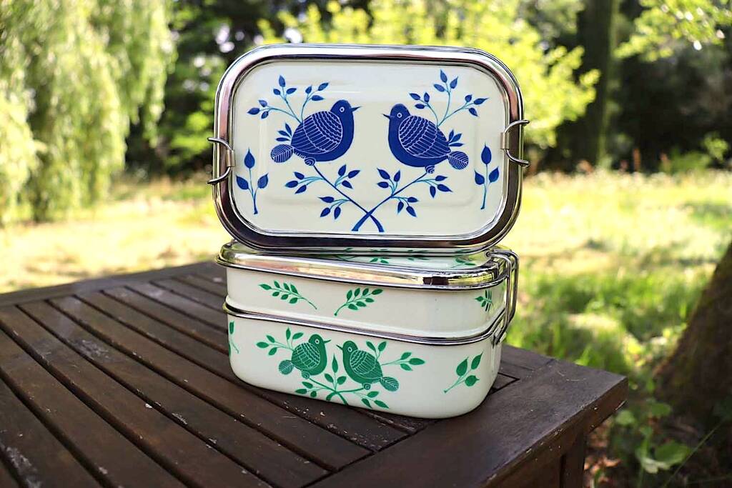 Hand Painted Rectangle Bento Box 'Garden Birds'