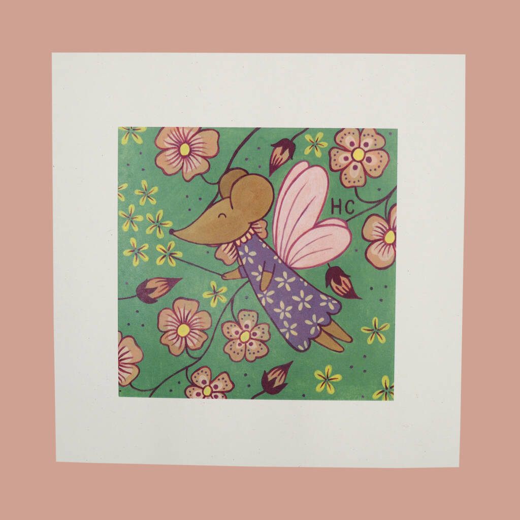 Reusable Eco Friendly Mouse Fairy Children's Card Blank Inside Or Optional Handwritten Message
