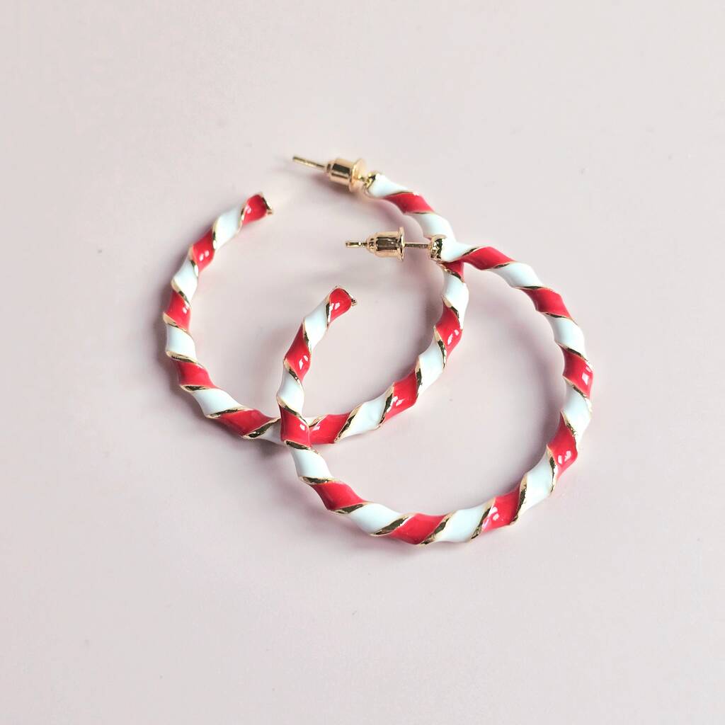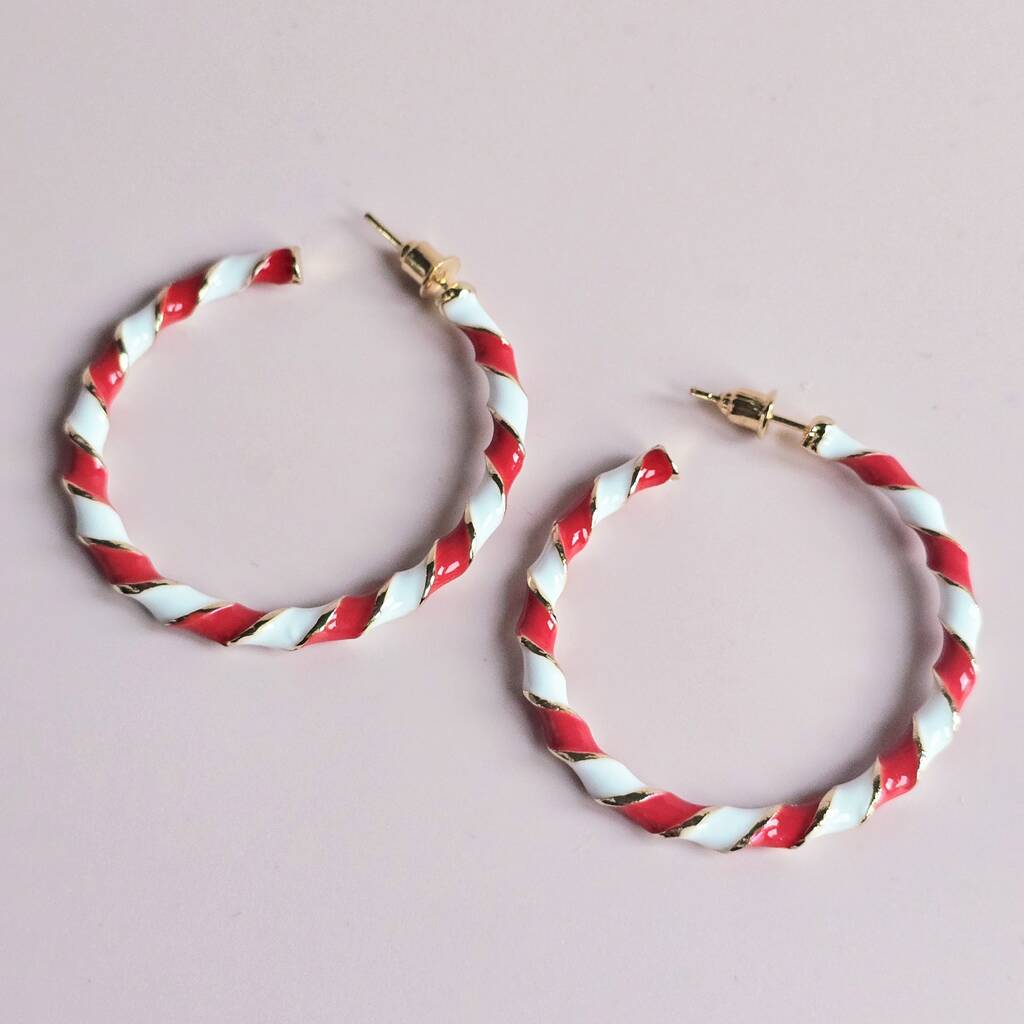 • Candy Cane Twist Hoop Christmas Earrings, thumbnail 2 of 4