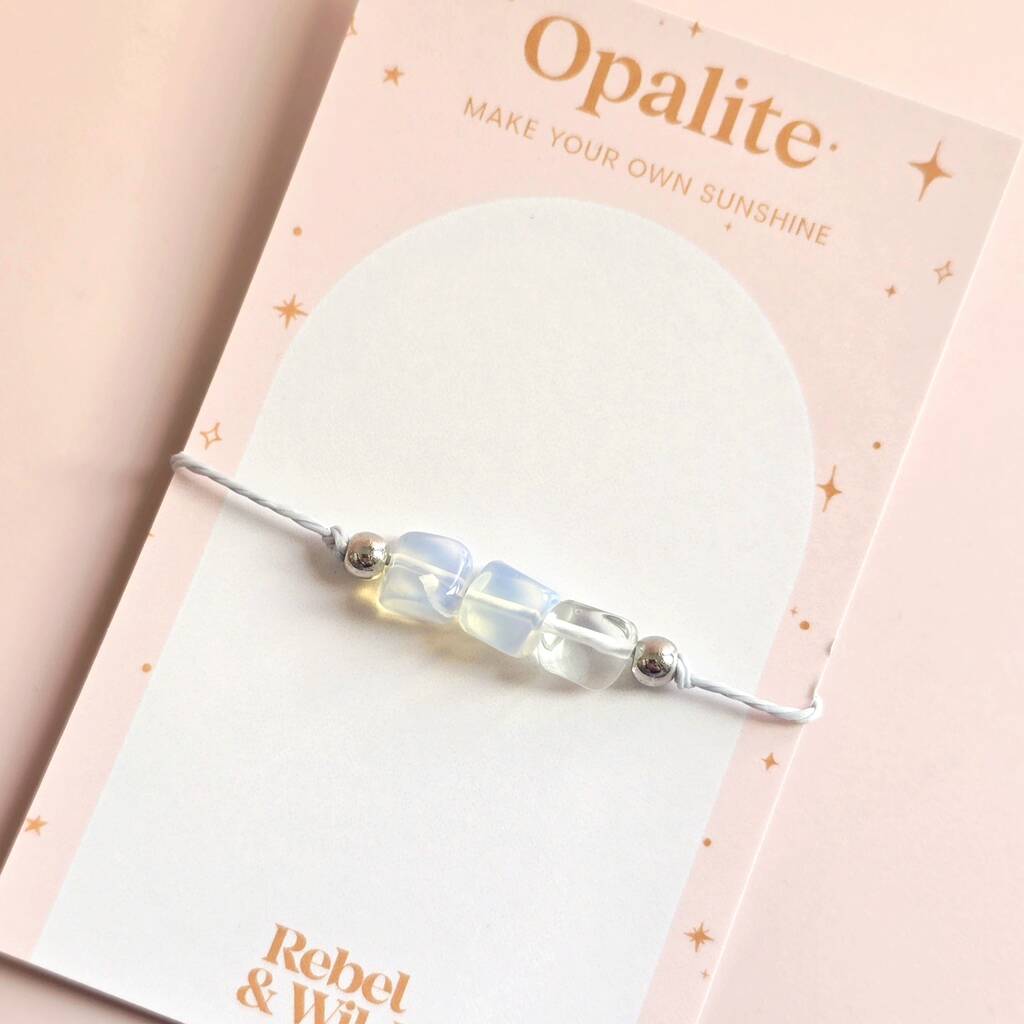 This delicate opalite bracelet is designed to capture a little bit of light and optimism, inspired by Taylor Swift's iconic song, Opalite.