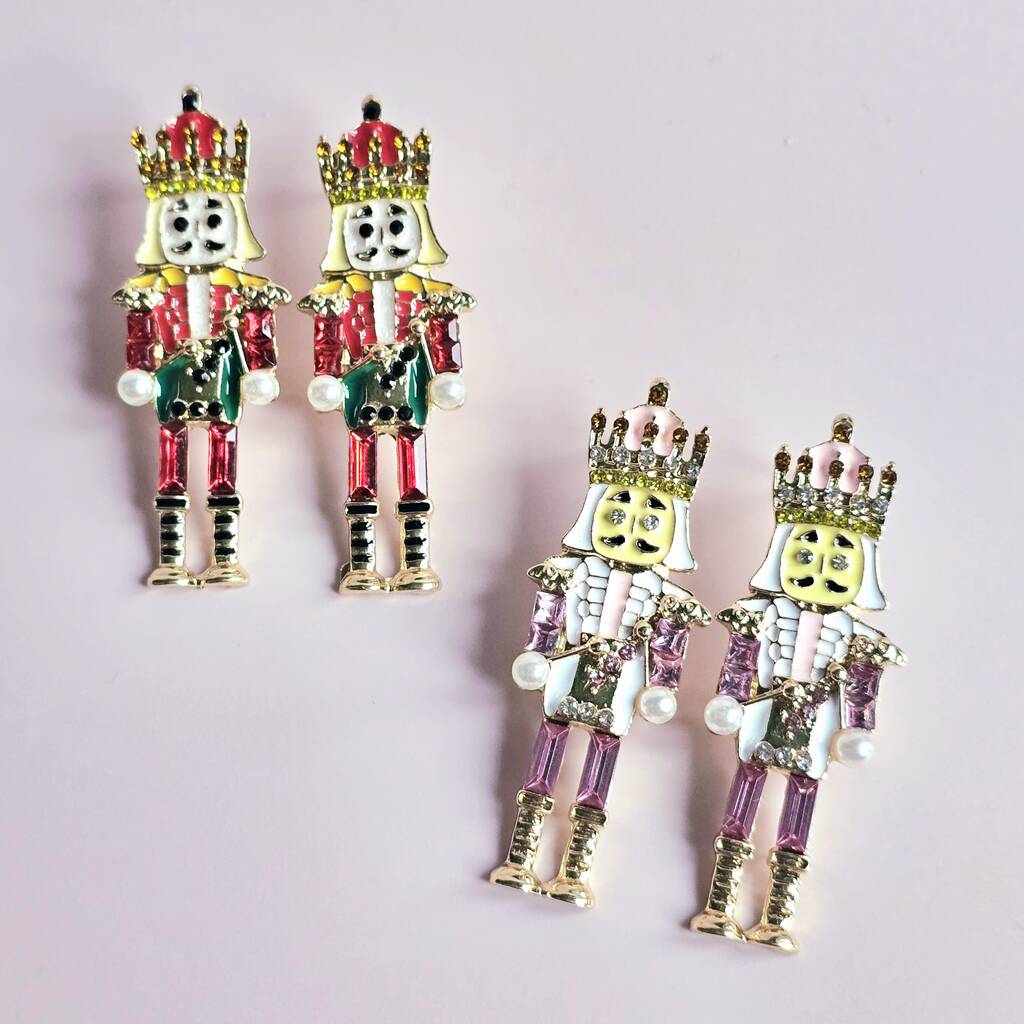 These Pink or Red Nutcracker Statement Earrings bring a bold festive twist to your holiday style.