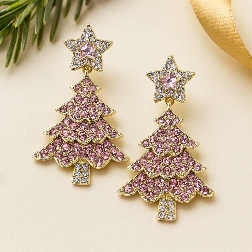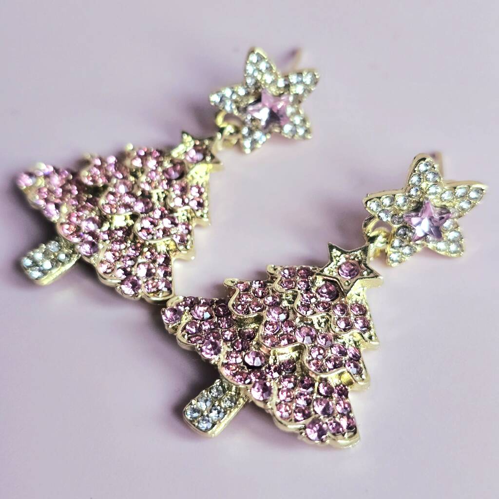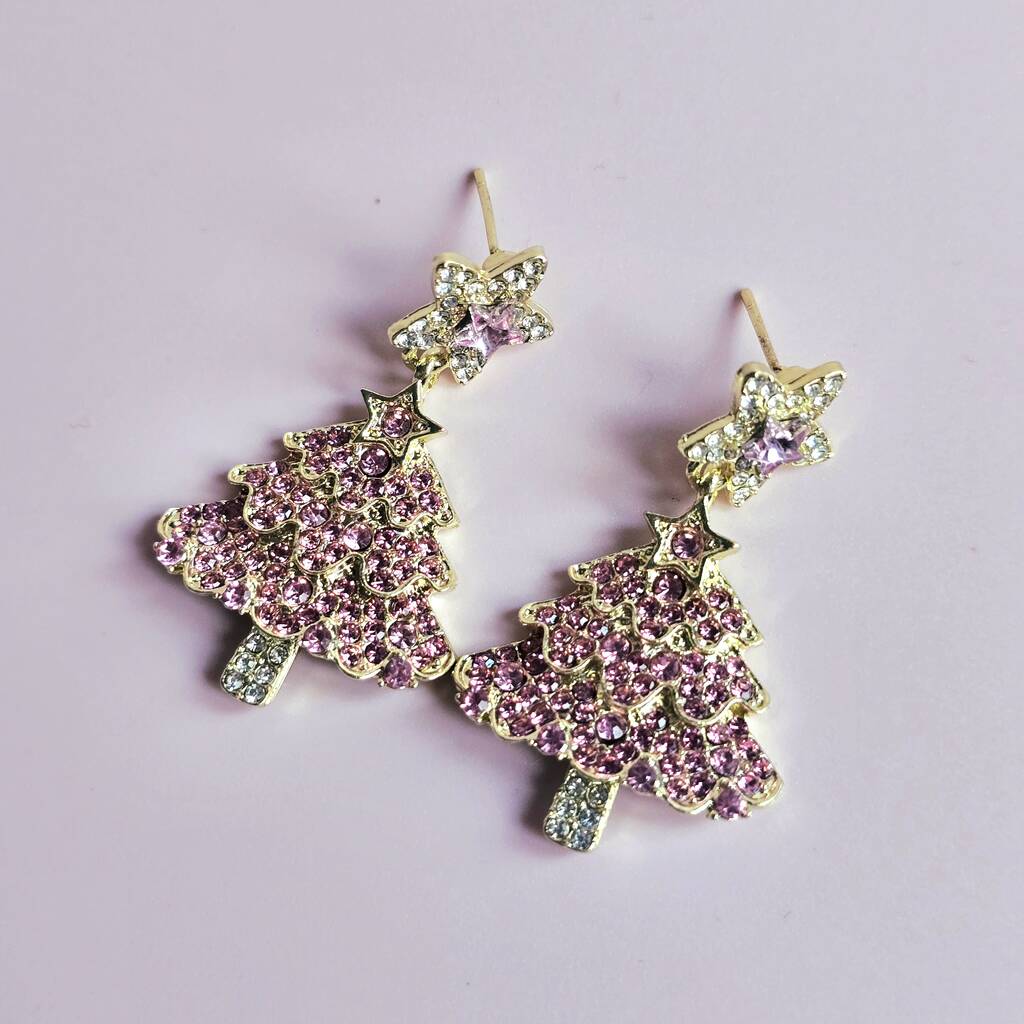 Pink Rhinestone Christmas Tree Statement Earrings, 1 of 4