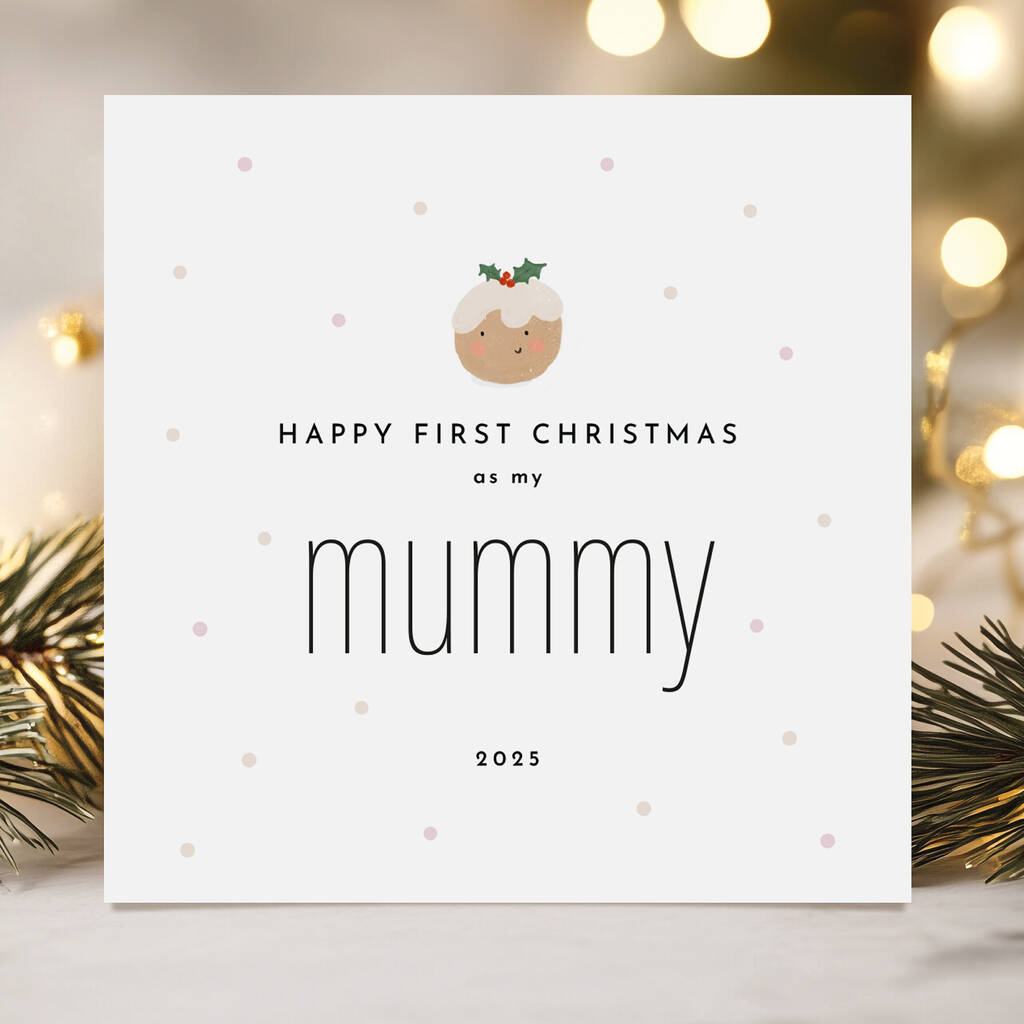Happy First Christmas As My Mummy / Daddy Card: Cute Christmas Pudding Design, 1 of 12