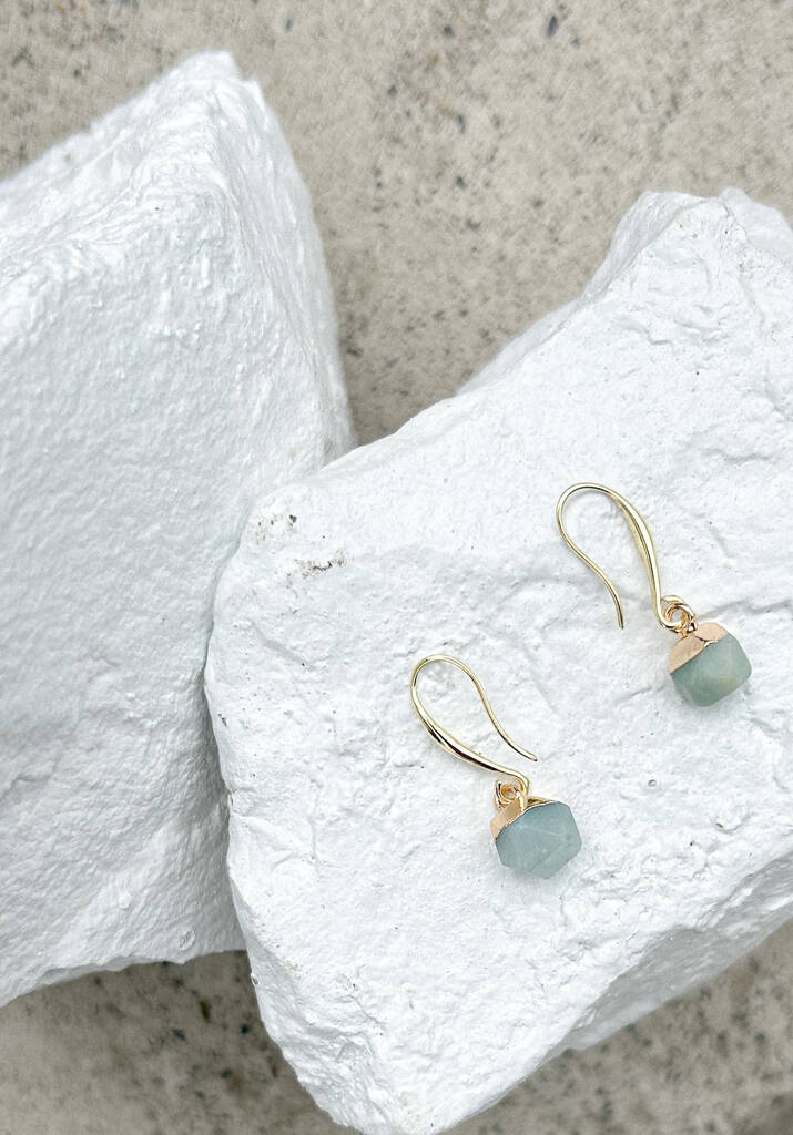Amazonite Nugget Real 18k Gold Plated Earrings