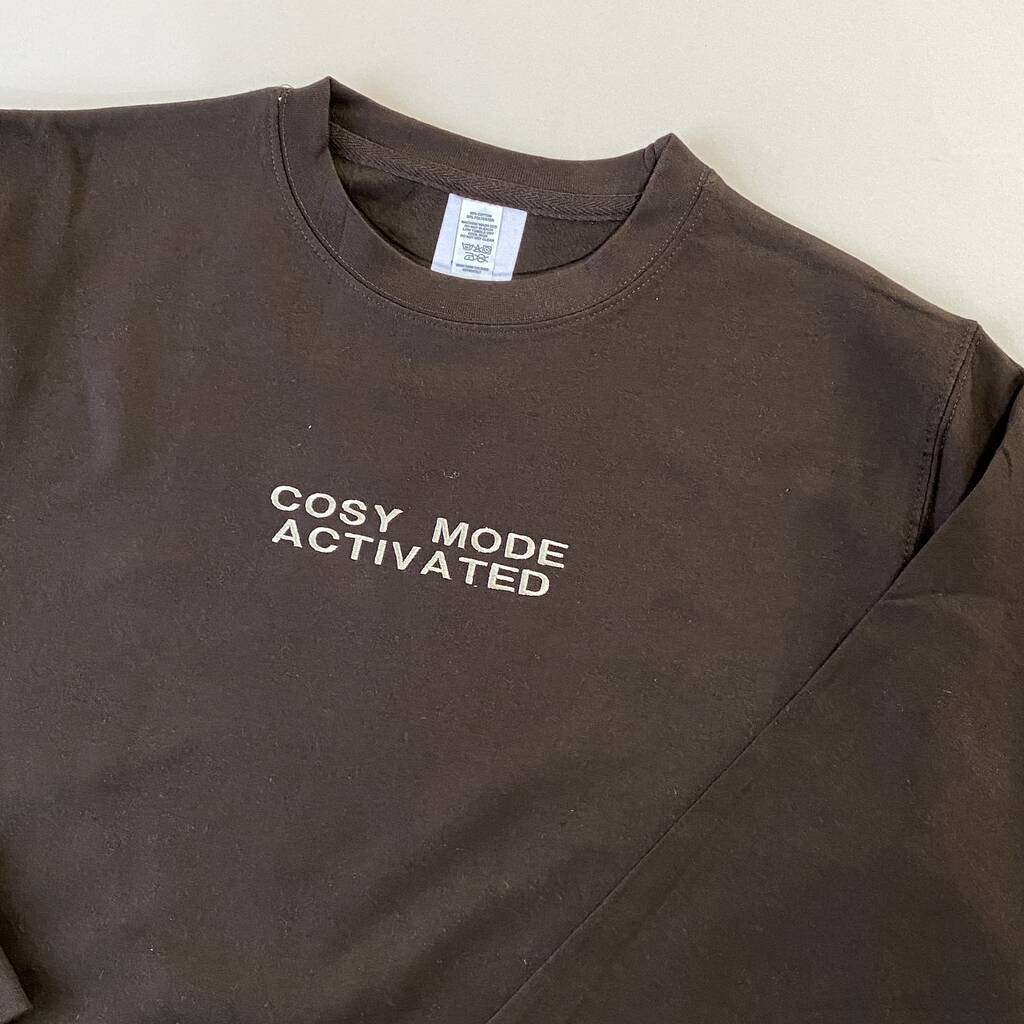 Embroidered Cosy Mode Activated Slogan Sweatshirt