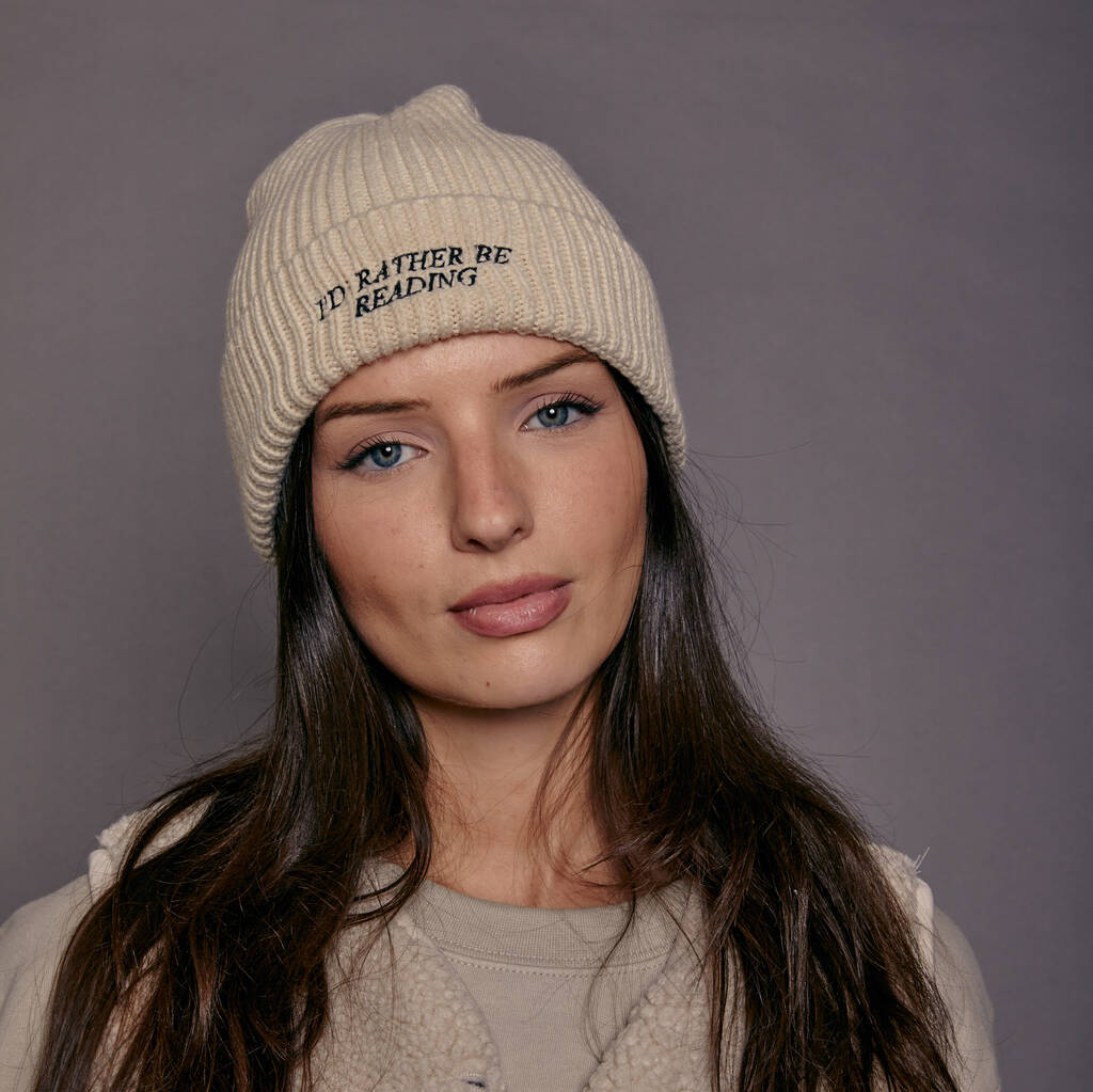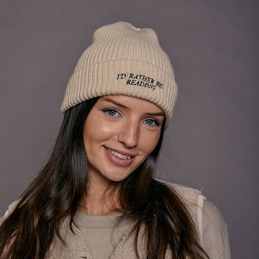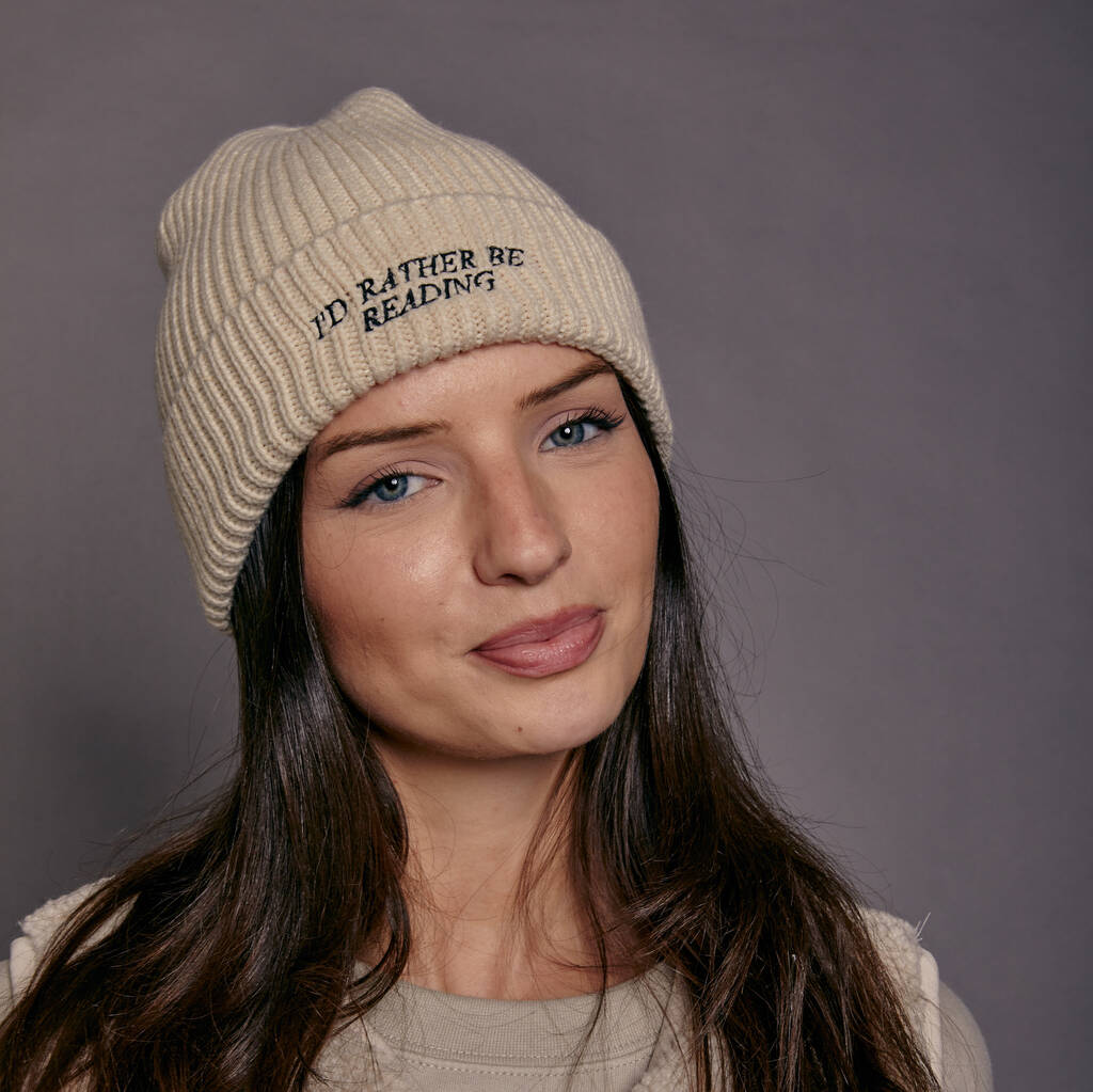 Embroidered I'd Rather Be Reading Beanie Hat, 1 of 6