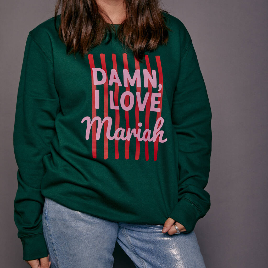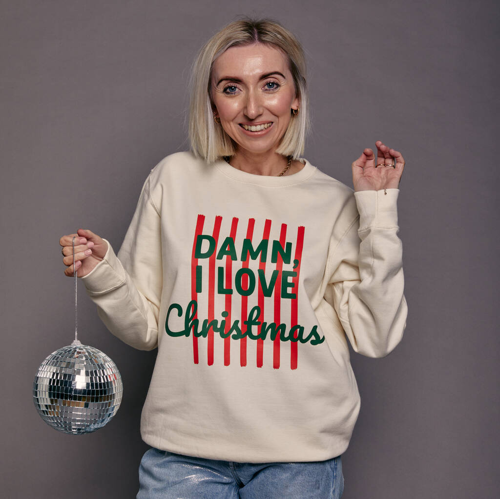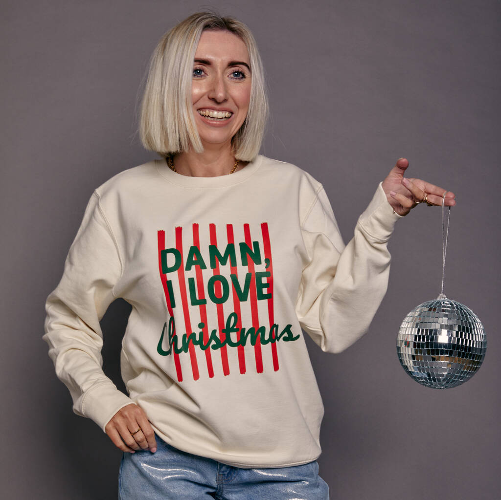Personalised 'Damn I Love…' Slogan Christmas Sweatshirt