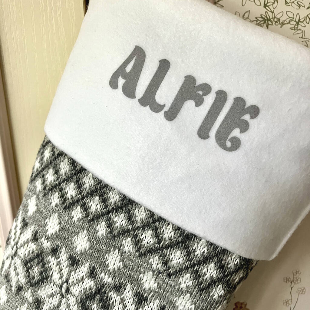 The Personalised Pink/Grey Nordic Knitted Christmas Stocking is available in two colourways as follows:-