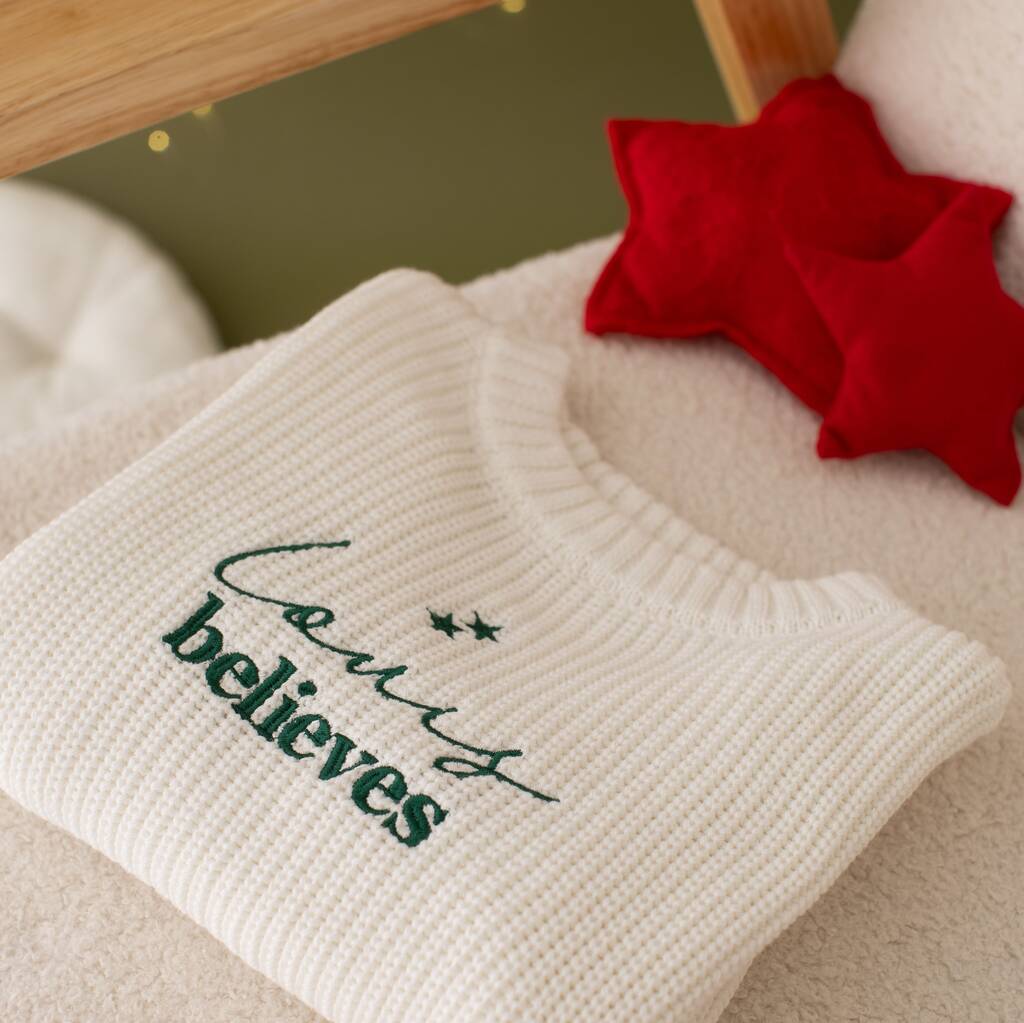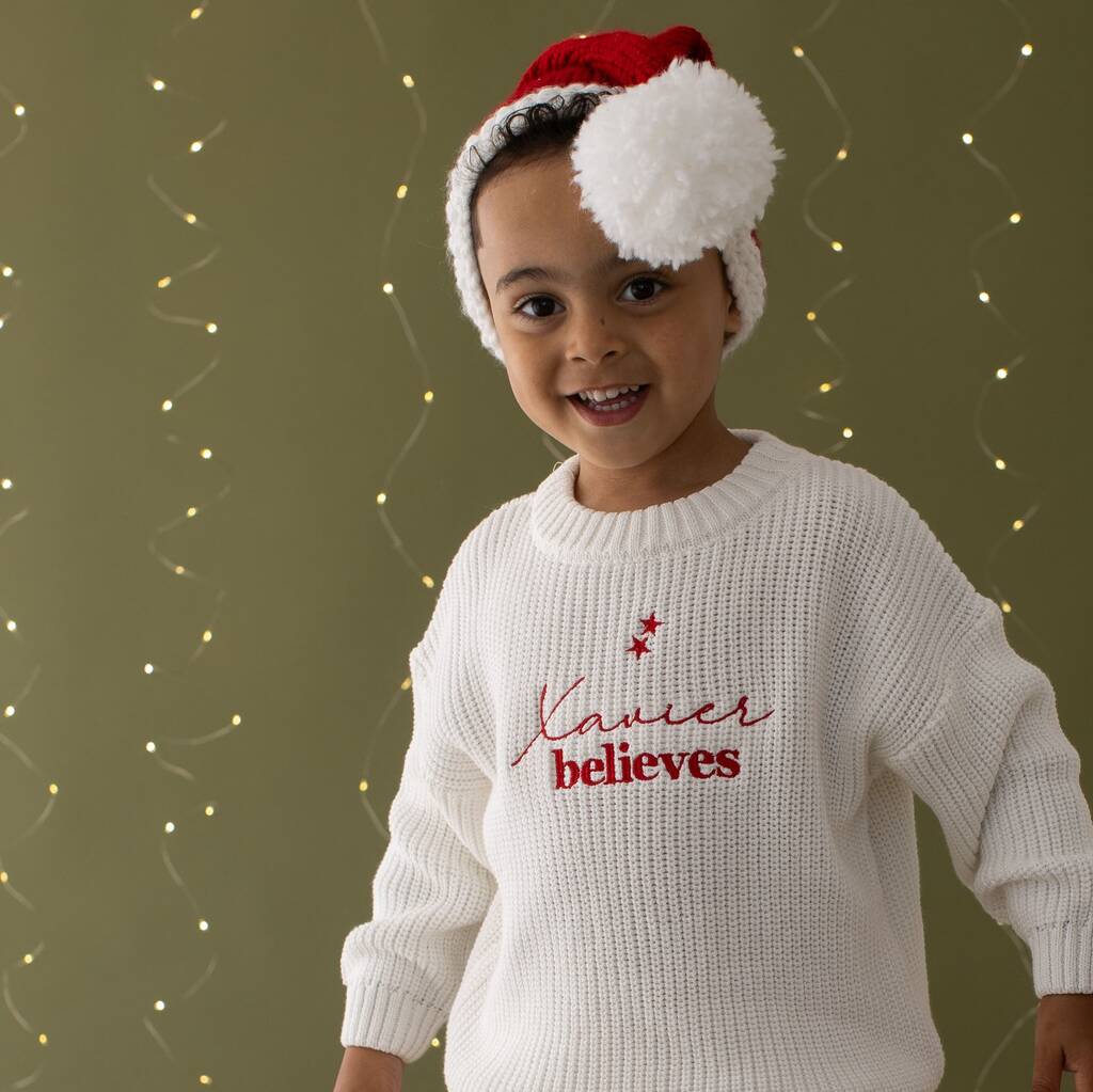 Personalised Name Believes Children's Christmas Knitted Jumper