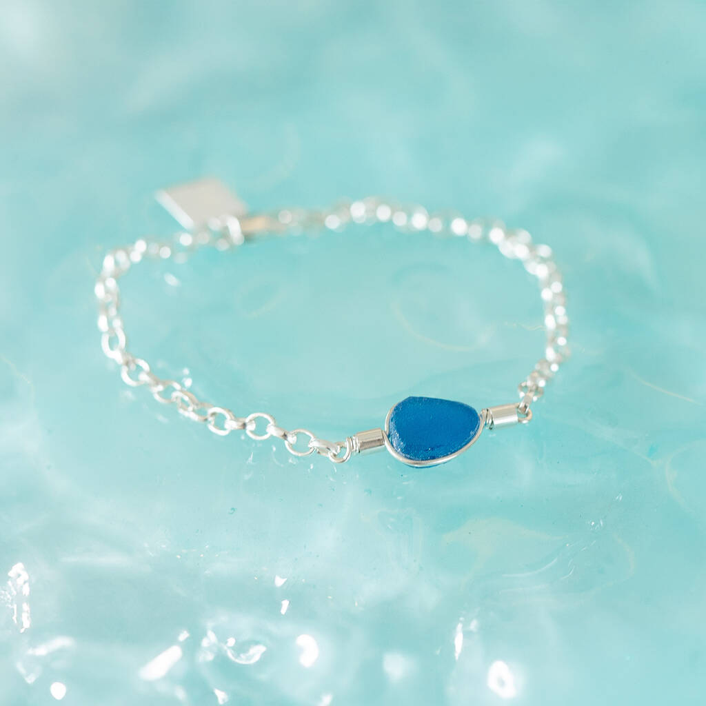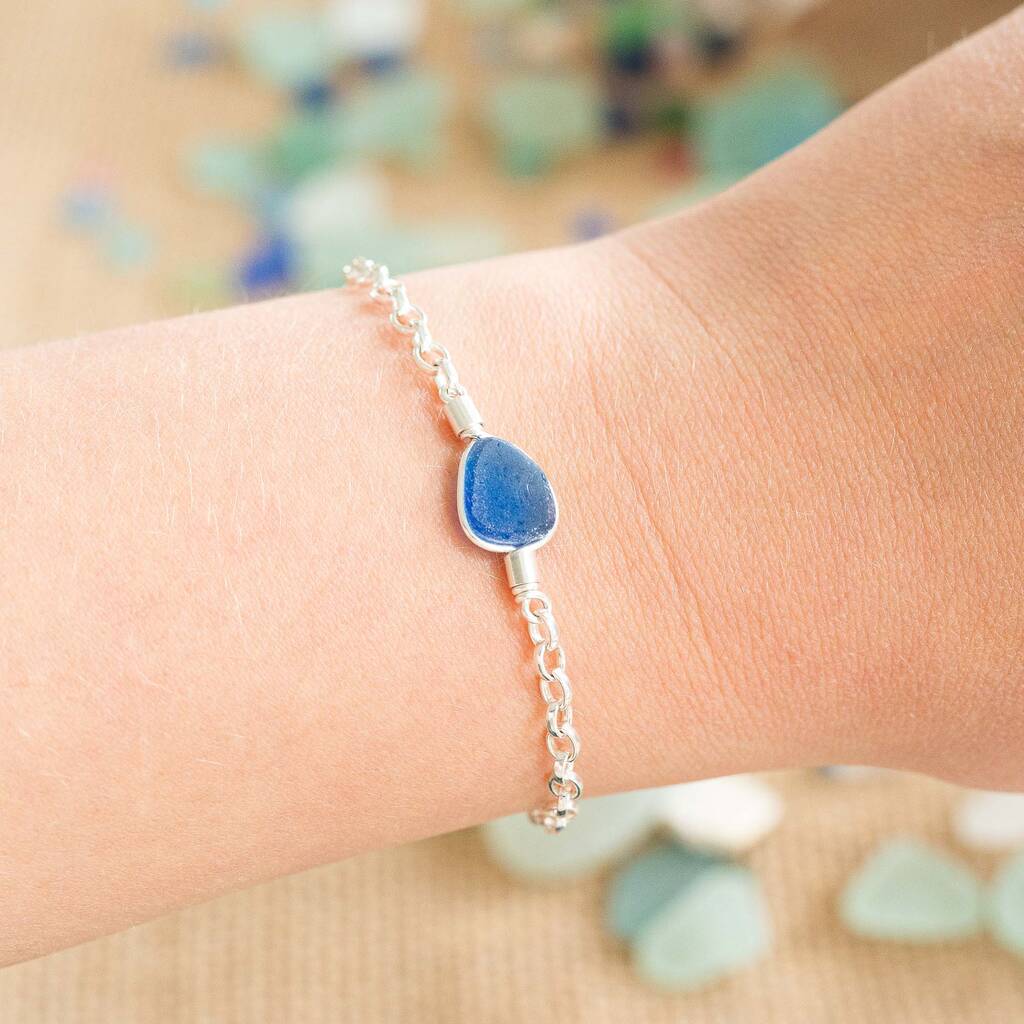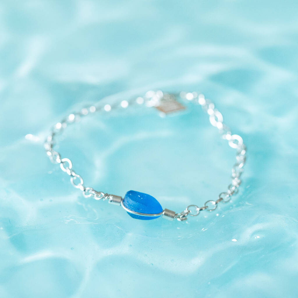 Please note, you will receive a blue sea glass bracelet however, sea glass is a product of nature & it will be slightly different in shape, size, hue & texture as pictured.