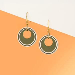 Pearlescent Taupe And Cream Circular Earrings • Gold Plated Sterling Silver Hooks