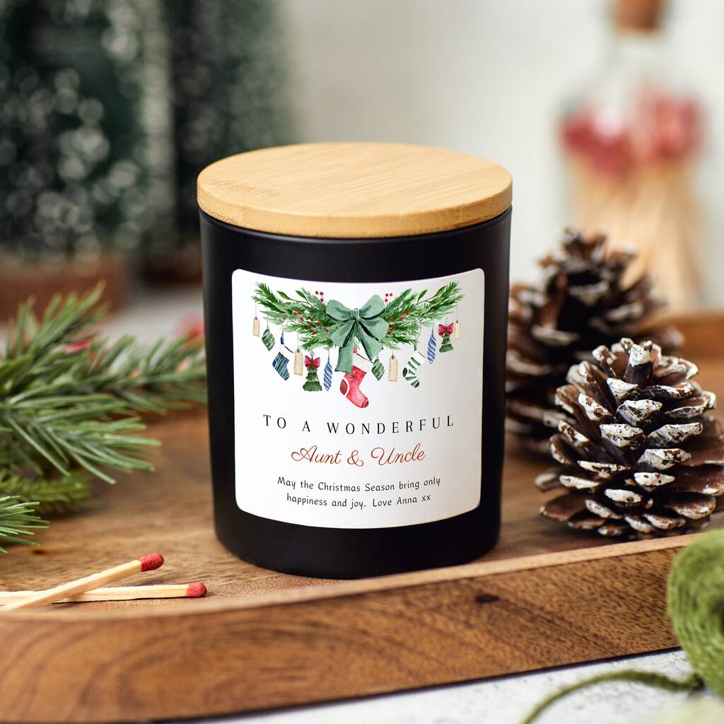Celebrate the special bond you share with your Aunt and Uncle this festive season with a beautifully handmade personalised Christmas candle.