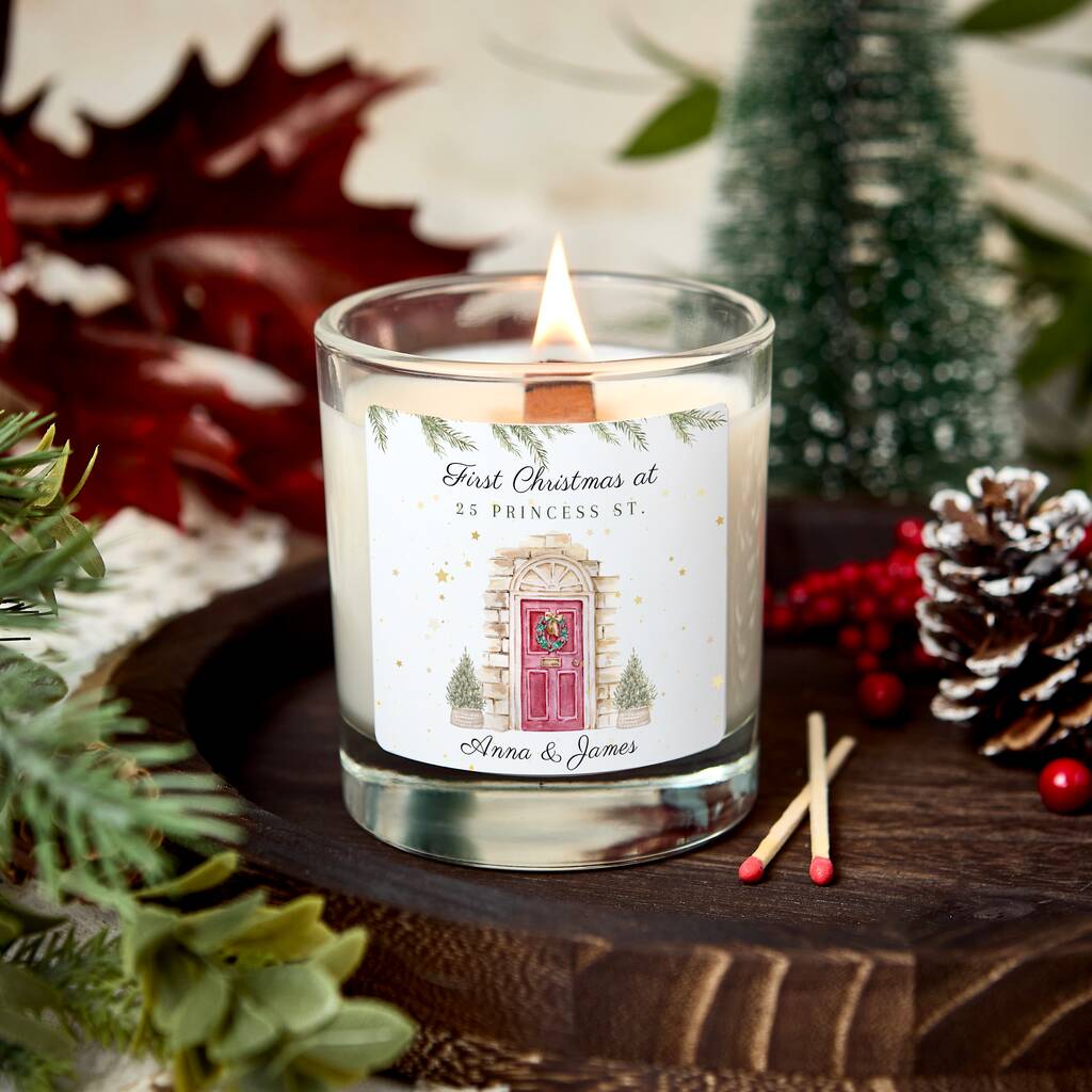 First Christmas New Home Candle, Personalised First Christmas Housewarming Gift, New House Gift Christmas Candle, First Home Scented Candle, Couple’s New Home Xmas Gift, Christmas Eve Candle for New Homeowners