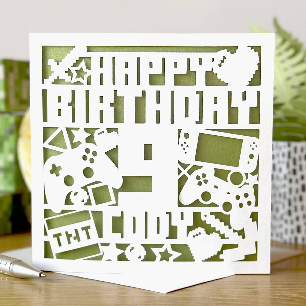 Personalised Name And Age Gaming Birthday Cut Out Card