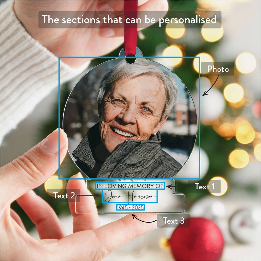 Beautiful personalised ornament commemorating loved ones with custom photos. Perfect memorial keepsake and thoughtful tribute for remembrance occasions.