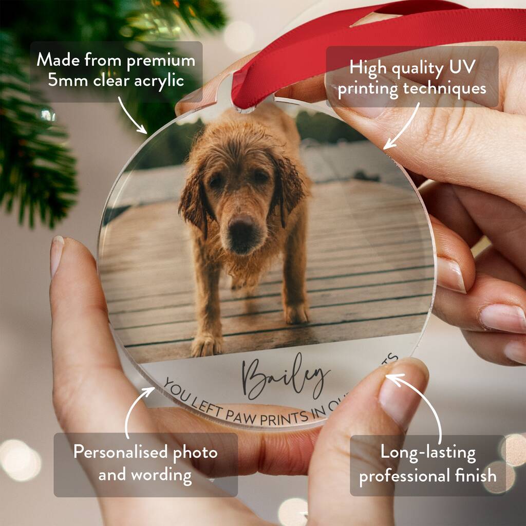 Simply enter your pet's details for this Custom Pet Memorial. Upload photos after checkout. We'll create your Handcrafted Quality ornament with Luxury Acrylic Gift finishing. Made to order in our UK workshop.