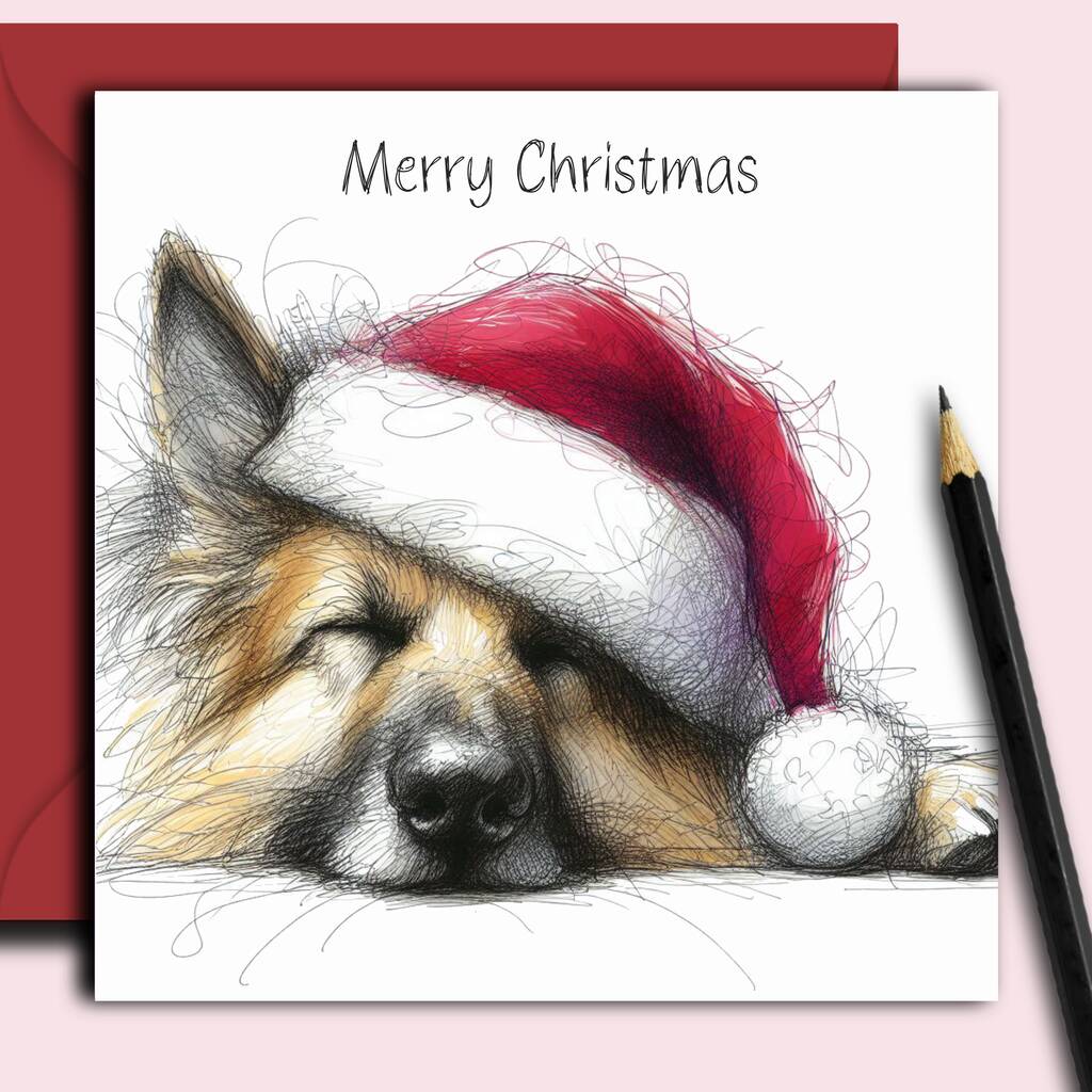 German Shepherd Dog Christmas Card. Sleepy Time