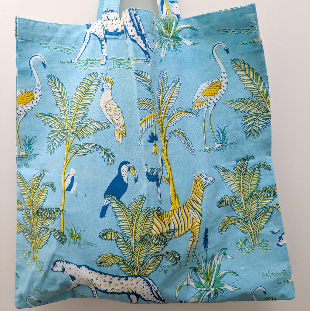 Large Colourful Block Print Tote Bags, Fair Trade Market Shoppers Handmade In India