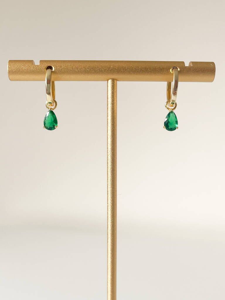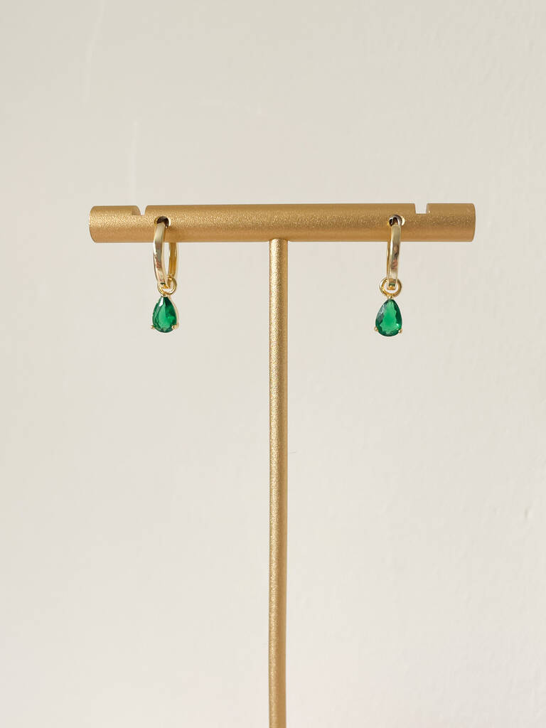 • Gold And Green Teardrop Hinged Huggie Earrings, thumbnail 1 of 9