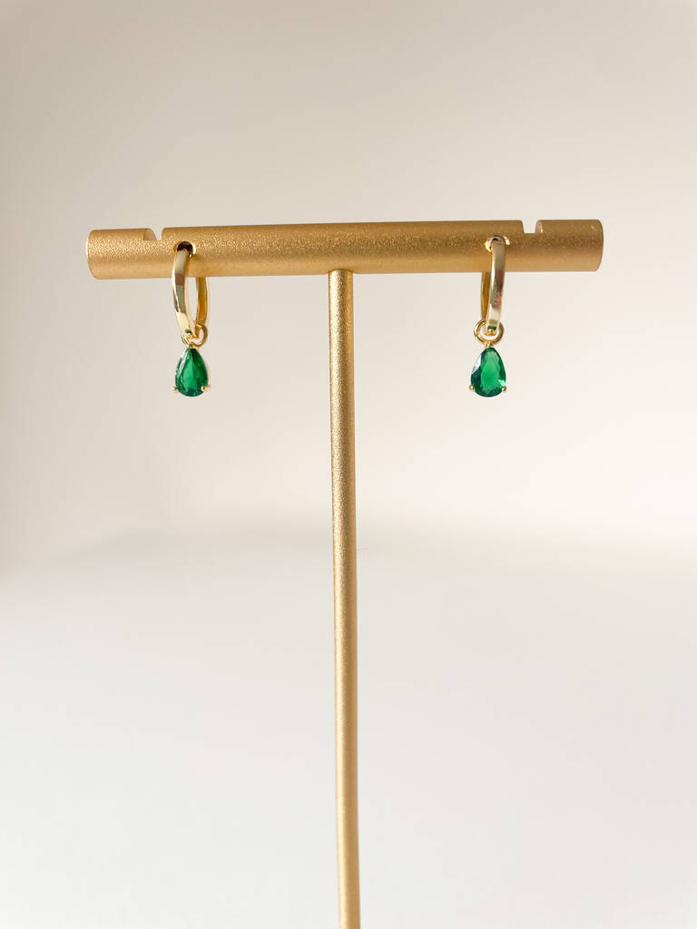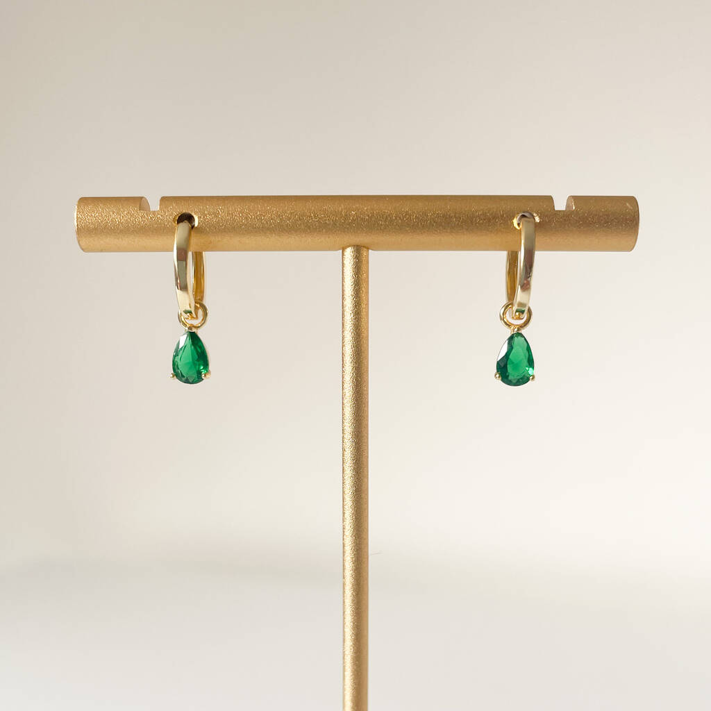 Gold And Green Teardrop Hinged Huggie Earrings, 1 of 9