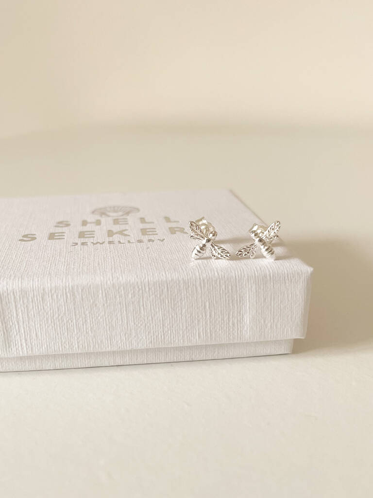 Sterling Silver Bee Stud Earrings, 1 of 6