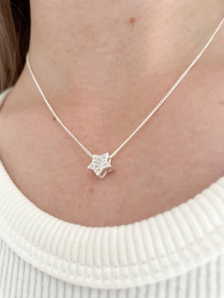 Sterling Silver Cubic Zirconia Star Slider Charm Necklace, 1 of 5